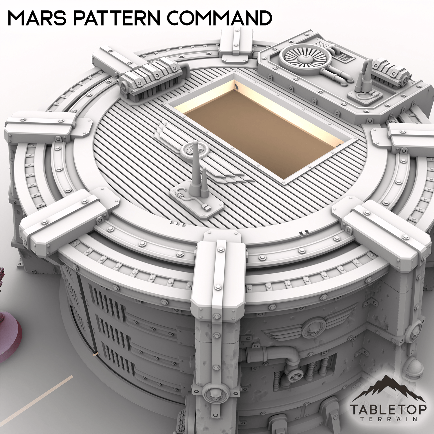 The Mars Pattern Command Bunker is a large bunker with a removable roof and sliding vault door. It's large enough for a full squad of infantry or a vehicle to fit inside.