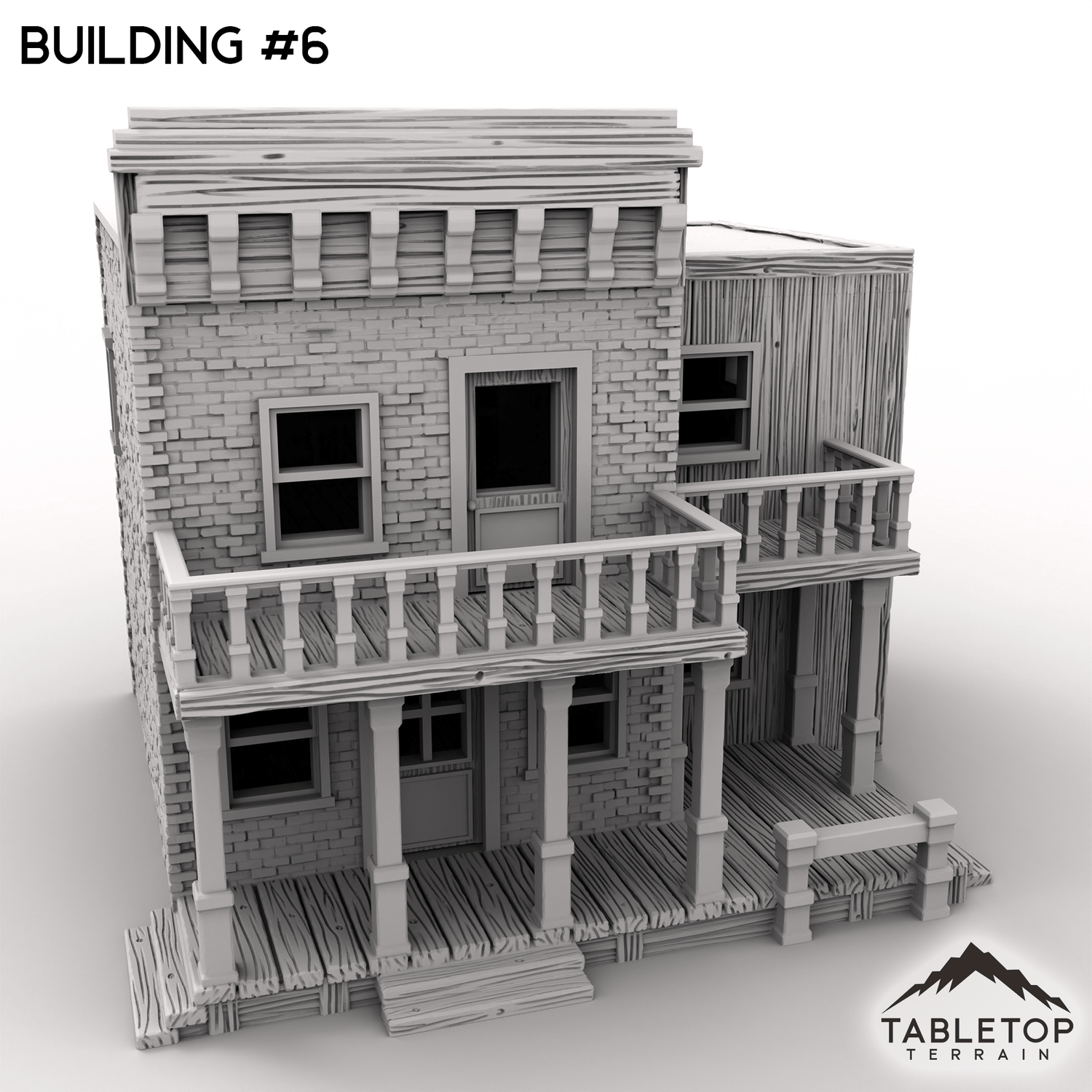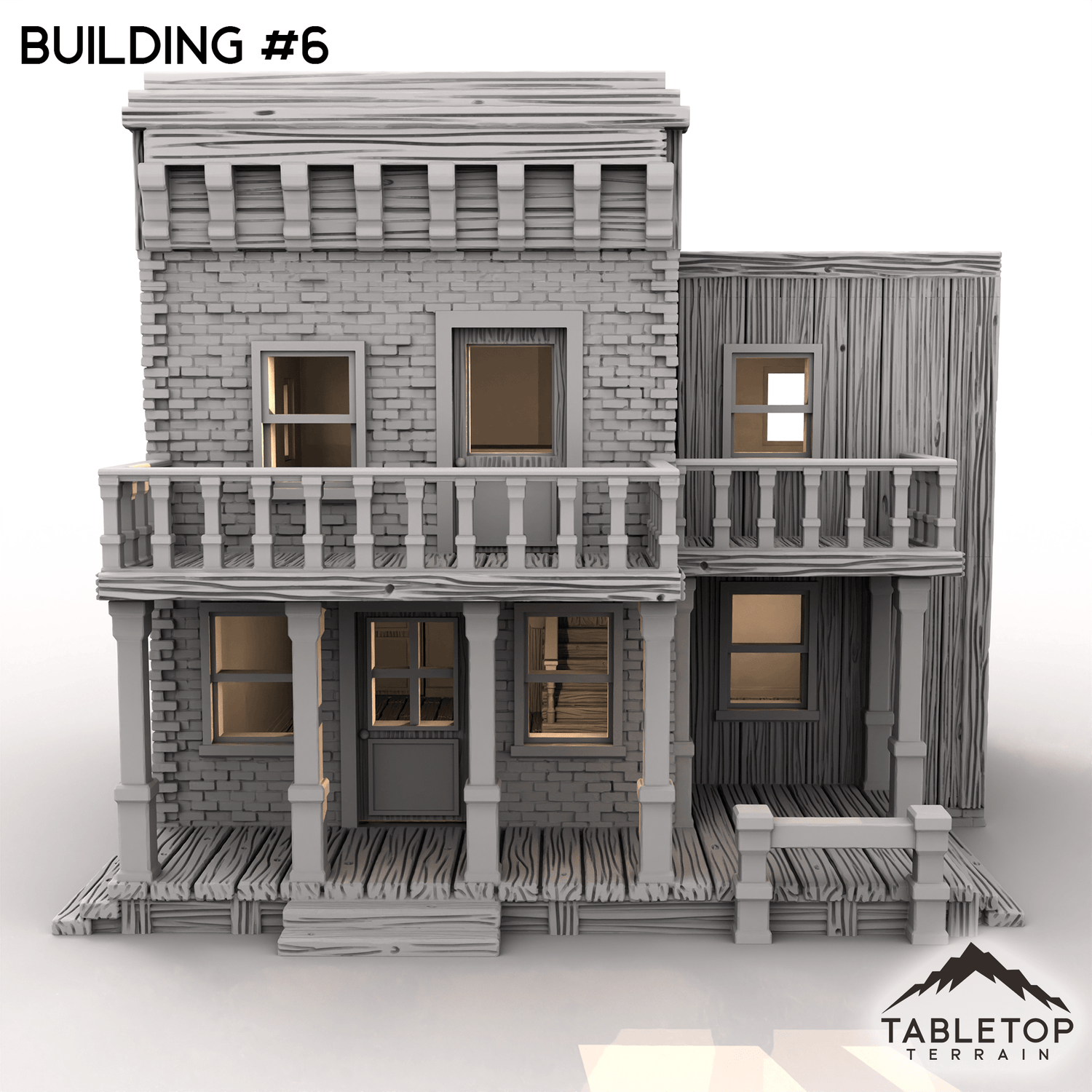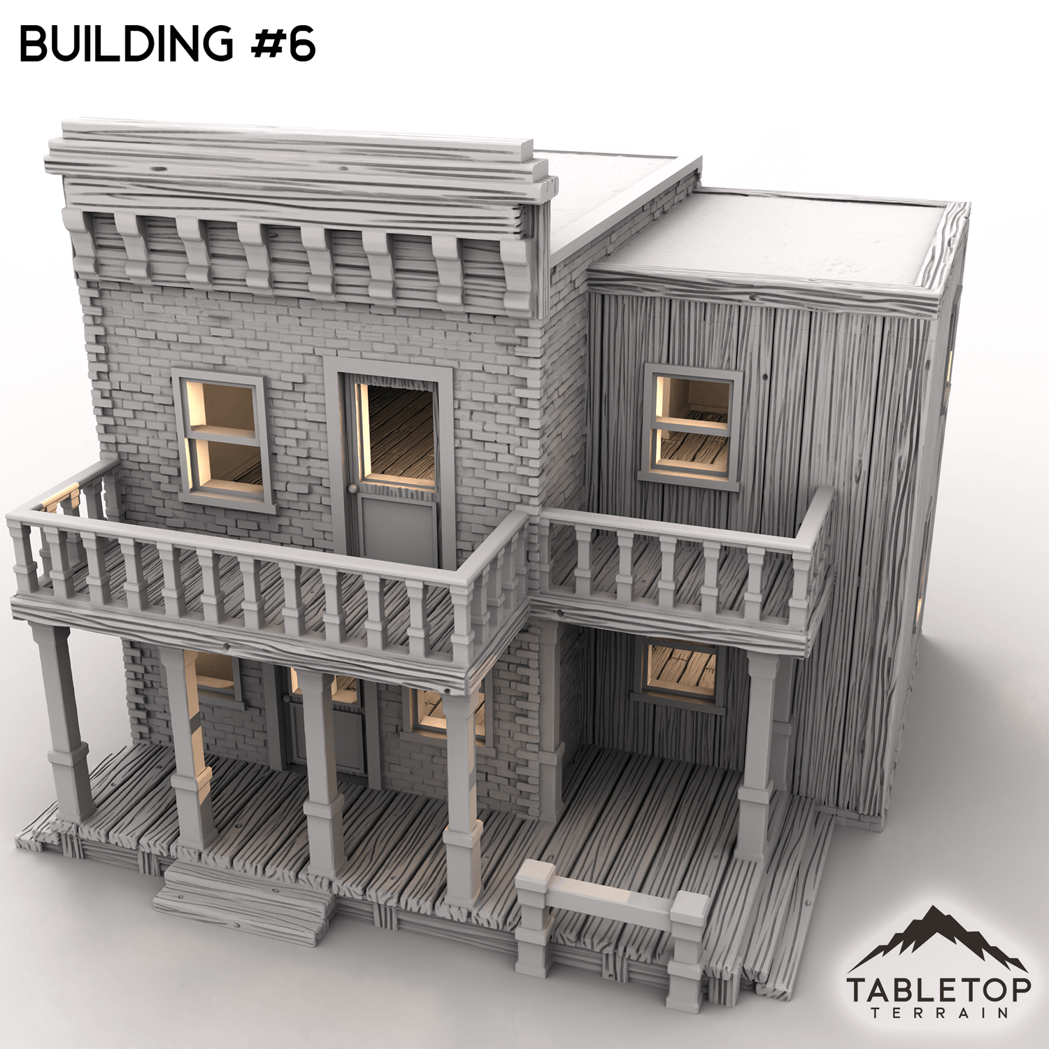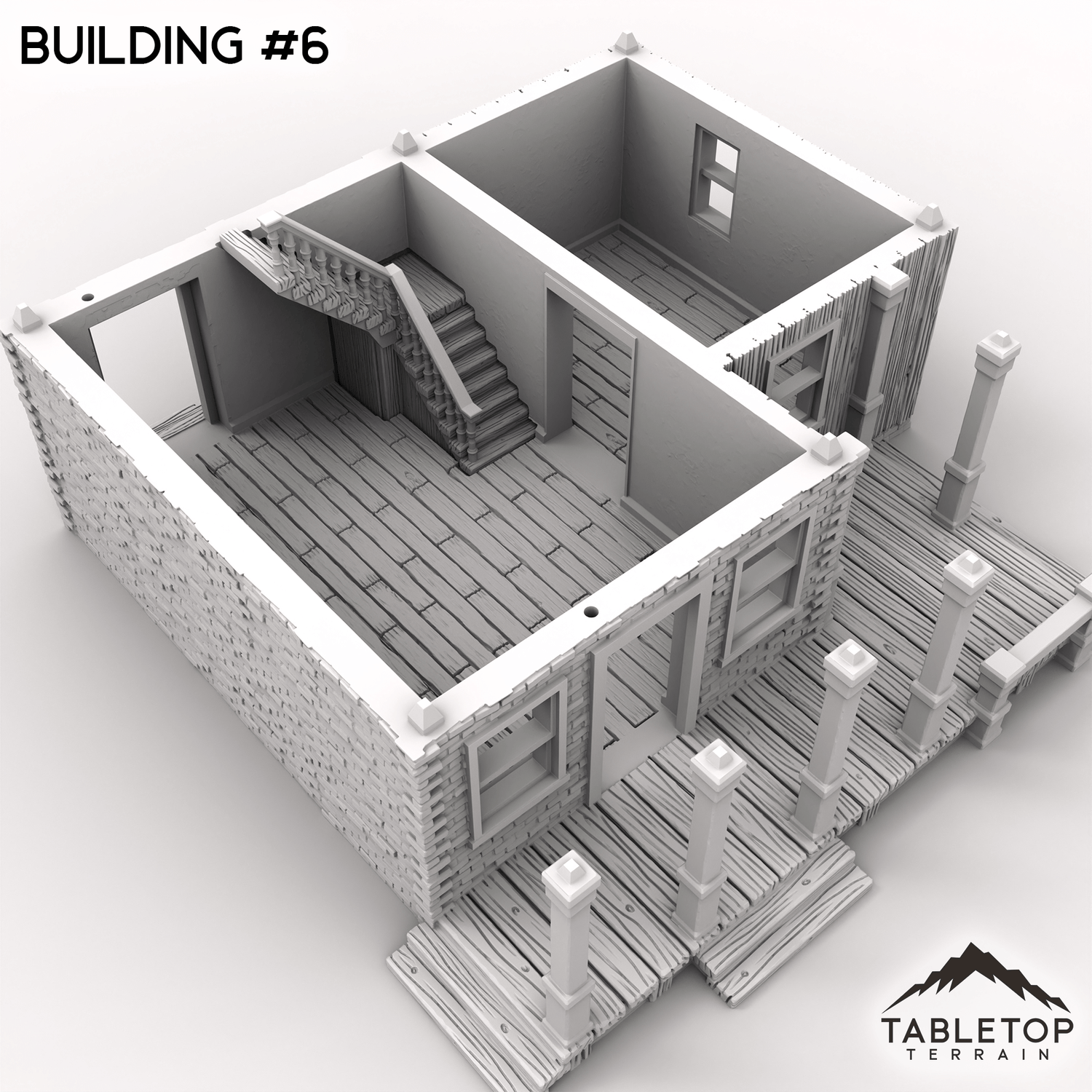 Dreadwood Building 6 is a 2-story multi-room structure, featuring a hitching rail for horses and balconies accessed from the stairwells inside. The town of Dreadwood features a wide range of highly functional buildings for making your own Wild West style town. Each building from Deadwood is made to be easy to paint, have working doors and open windows, designed to look good from the inside and out.
