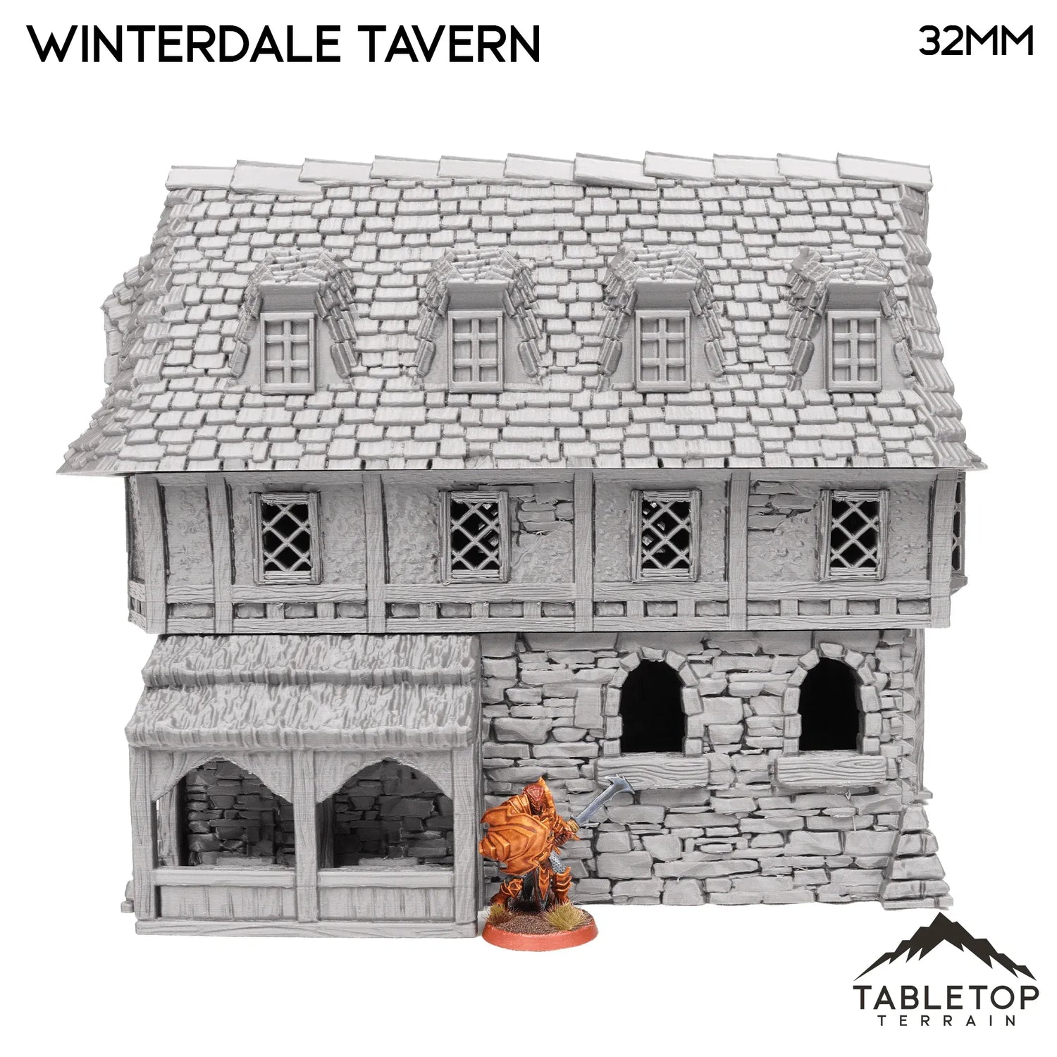 The Winterdale Tavern is a multistorey building with detailed interior, articulating doors, and removable roof. The Tavern would be perfect for fantasy games such as Dungeons and Dragons (DND), Age of Sigmar (AoS), Pathfinder, Frostgrave, or Conquest.