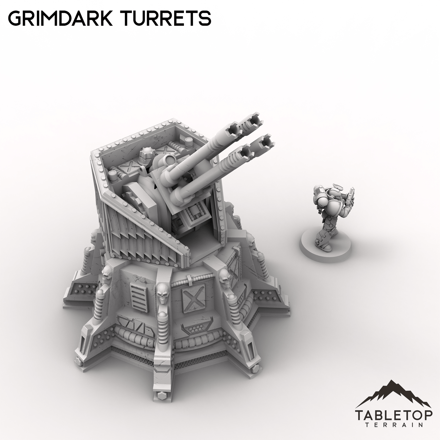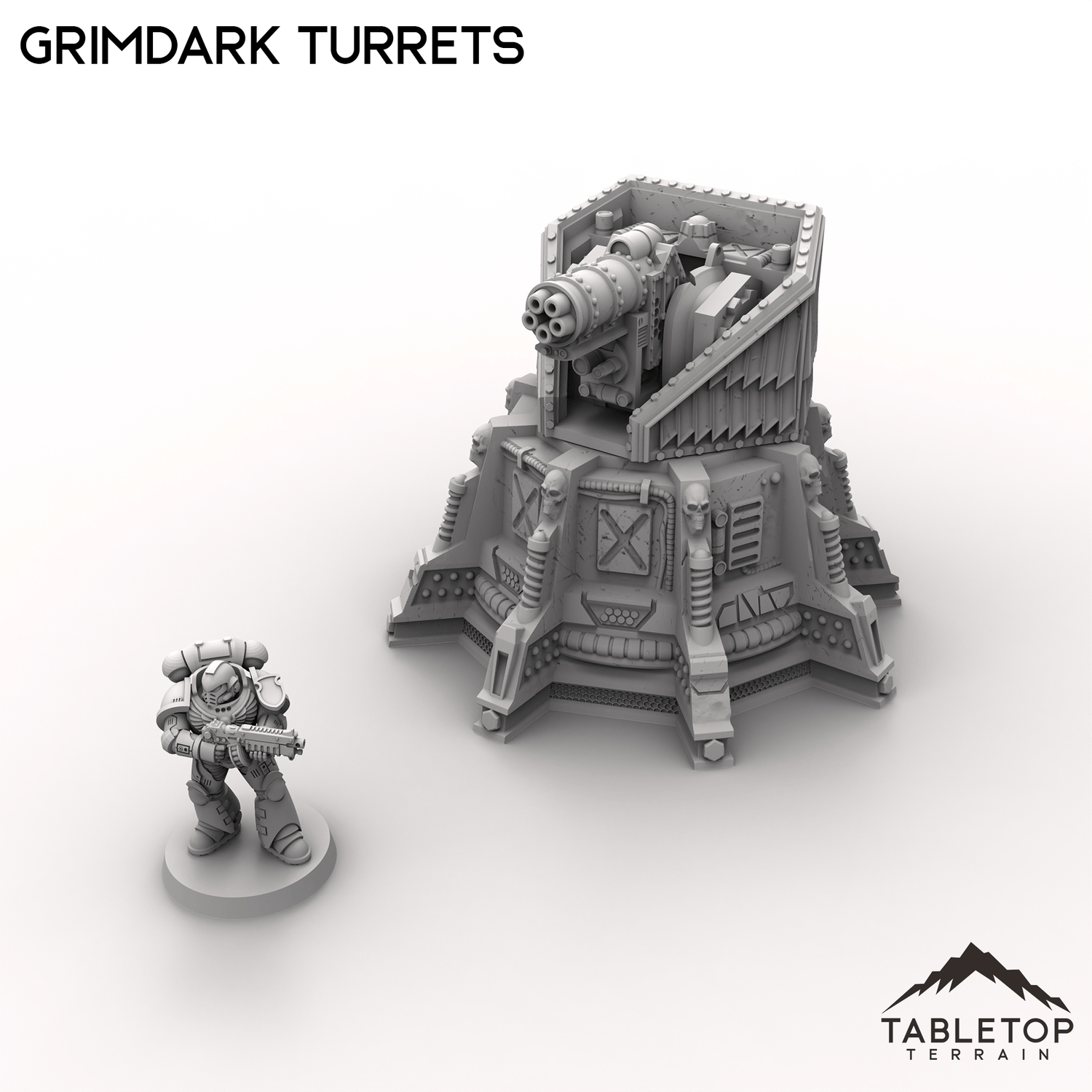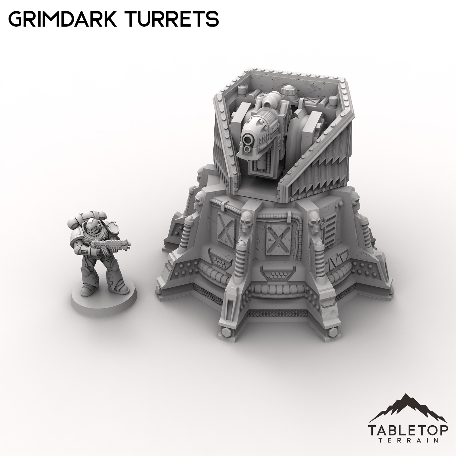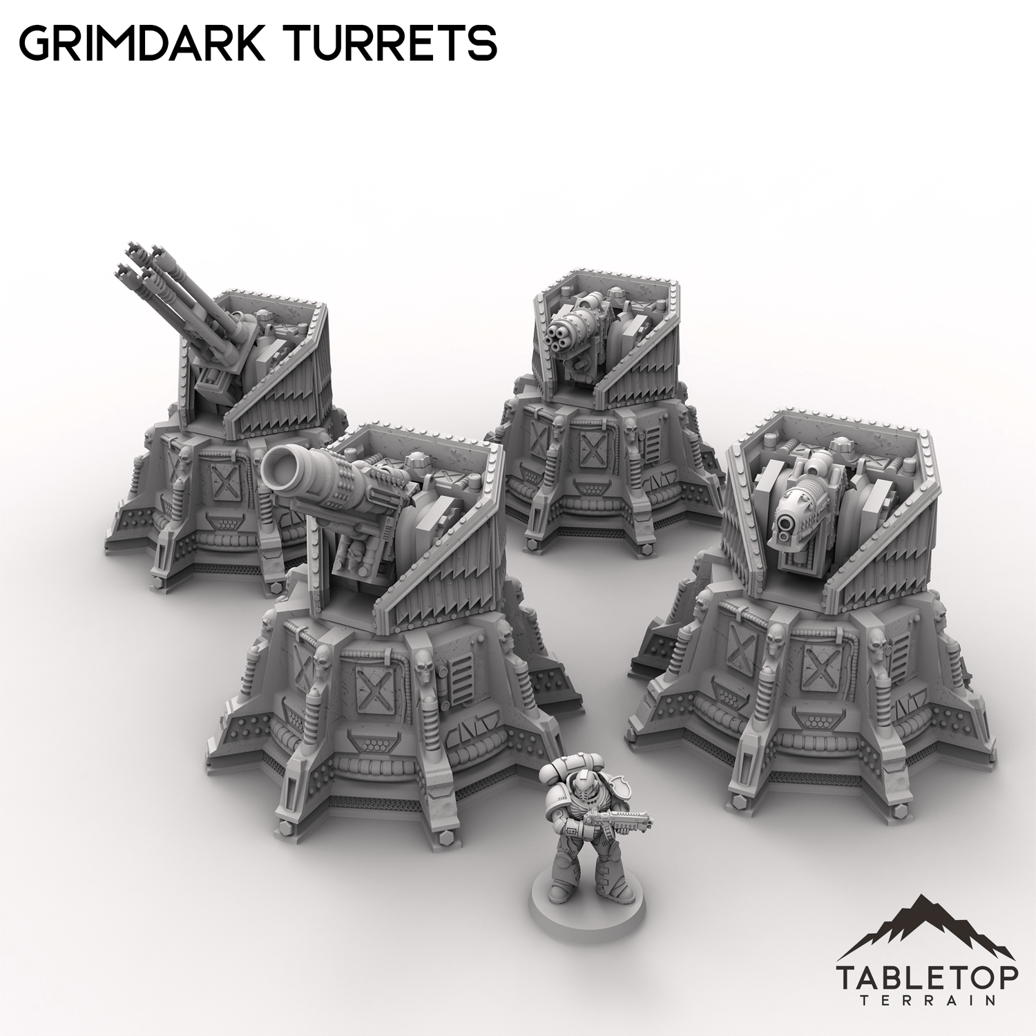 This set of Grimdark Turrets brings heavy firepower to any battlefield. Thick plating, reinforced barrels, and ominous silhouettes make them perfect for defending fortresses, bunkers, or war-torn landscapes.
