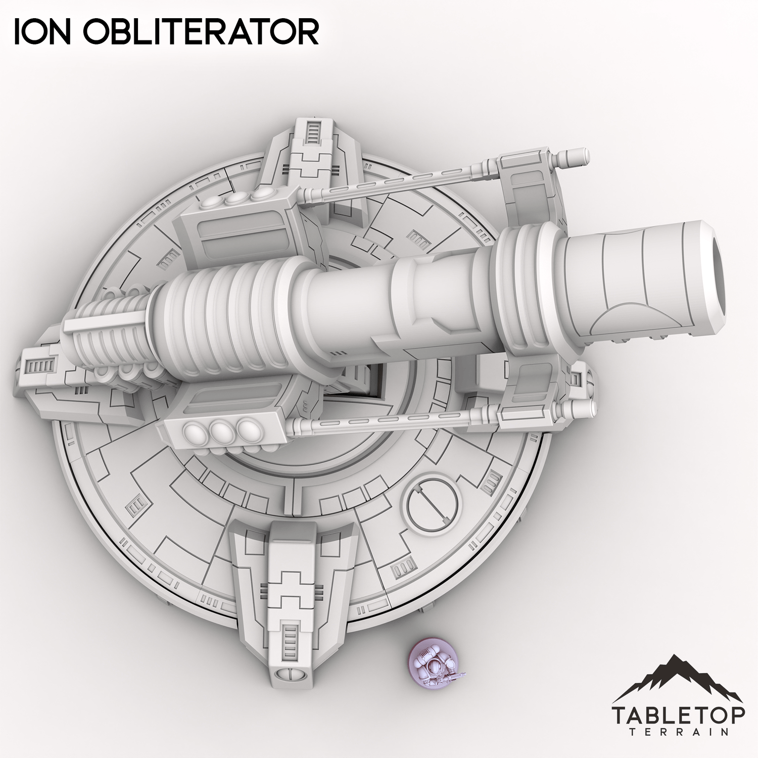 In 28mm scale, Ion Obliterator measures 412x390x252mm / 16.2x15.4x9.9 inches