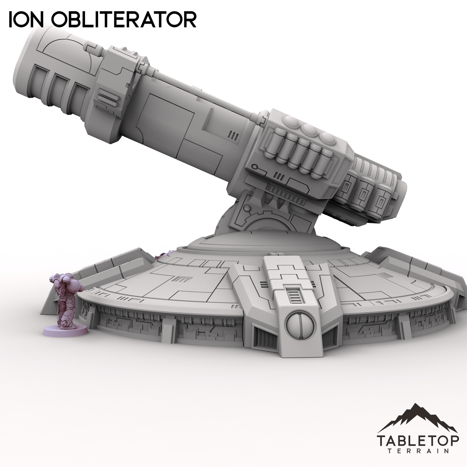 The Ion Obliterator is a massive energy cannon built for long-range devastation. Its sci fi base and reinforced housing make it look ready to vaporize anything unlucky enough to wander into view. The massive cannon can both elevate and rotate on its base.