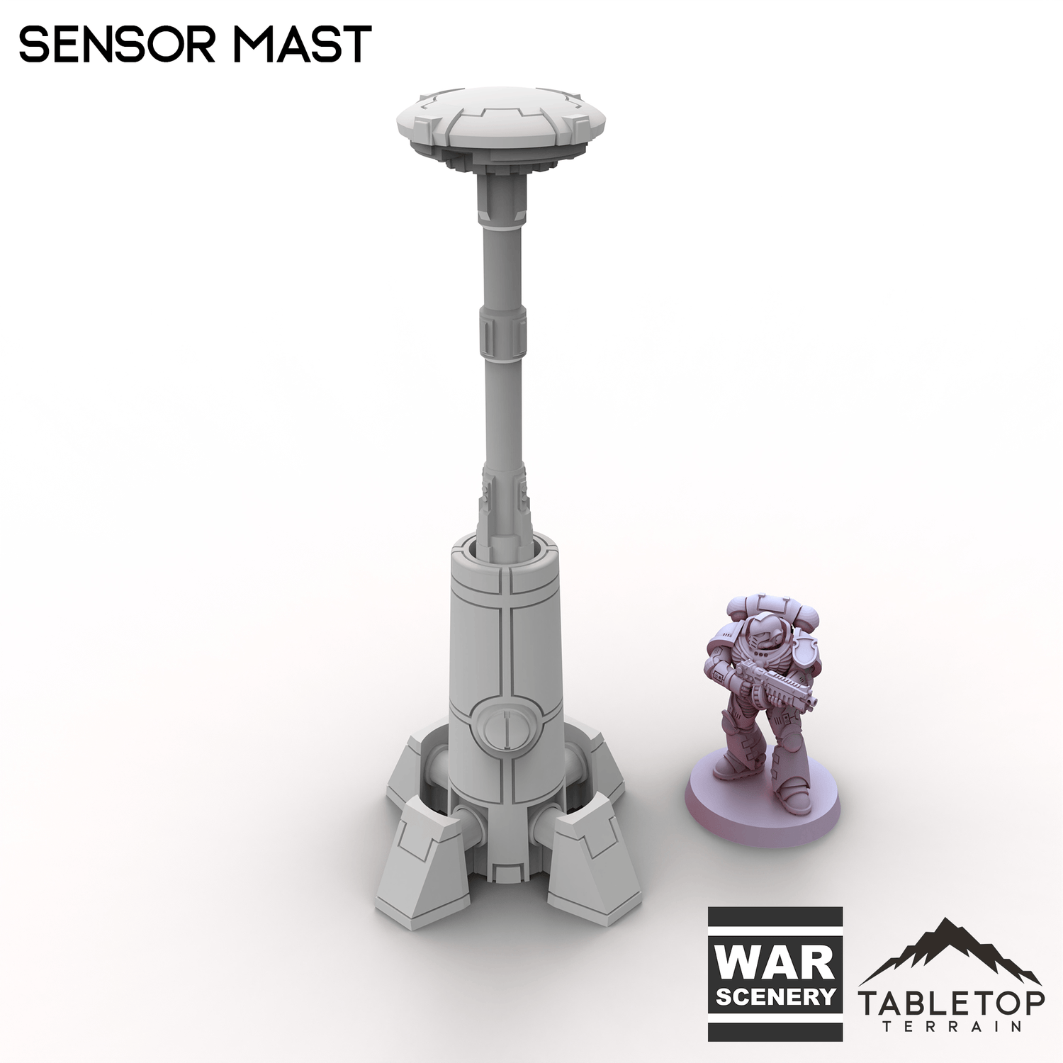 In 28mm scale, Sensor Mast measures 61x61x145mm / 2.4x2.4x5.7 inches