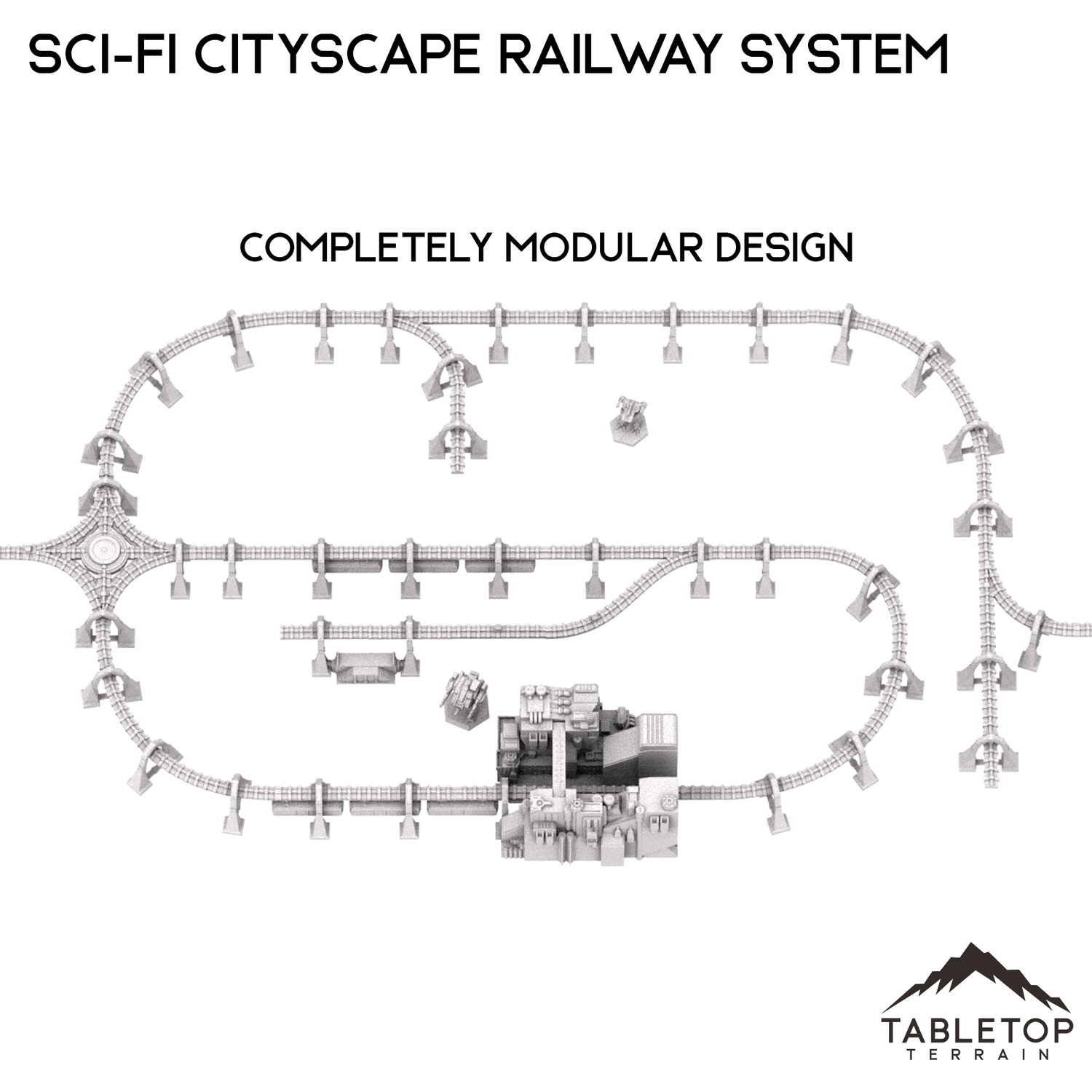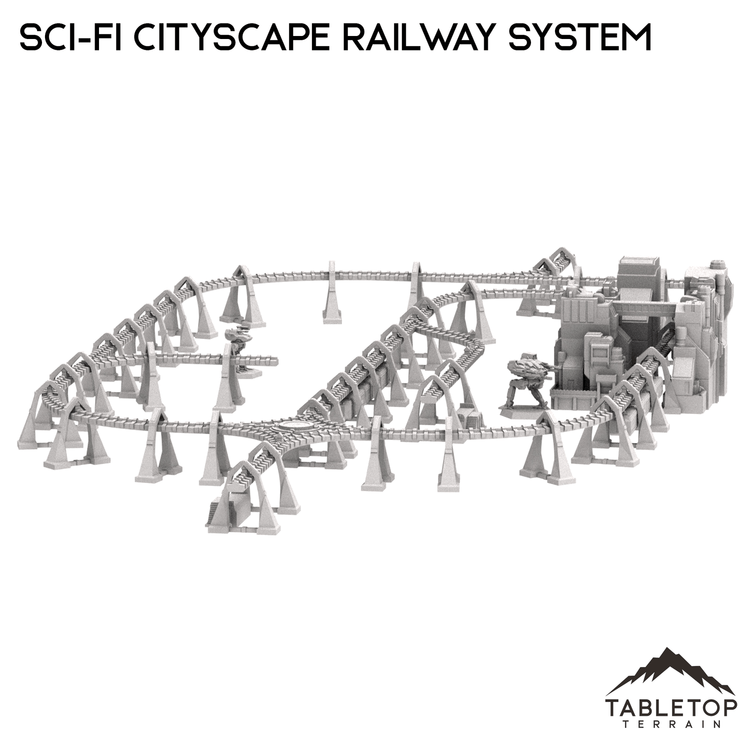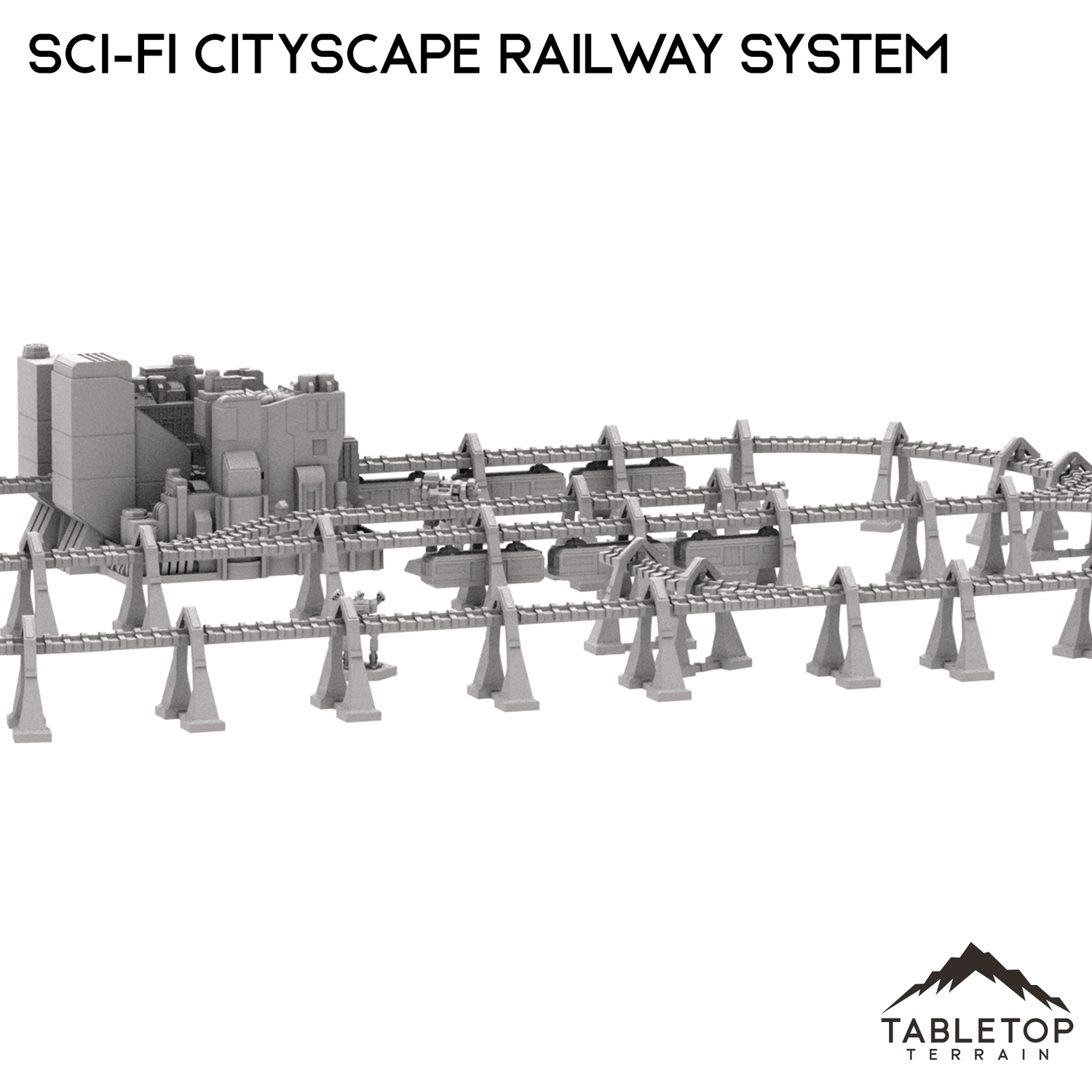 Sistema de rieles elevados de paisaje urbano de ciencia ficción de 6 mm