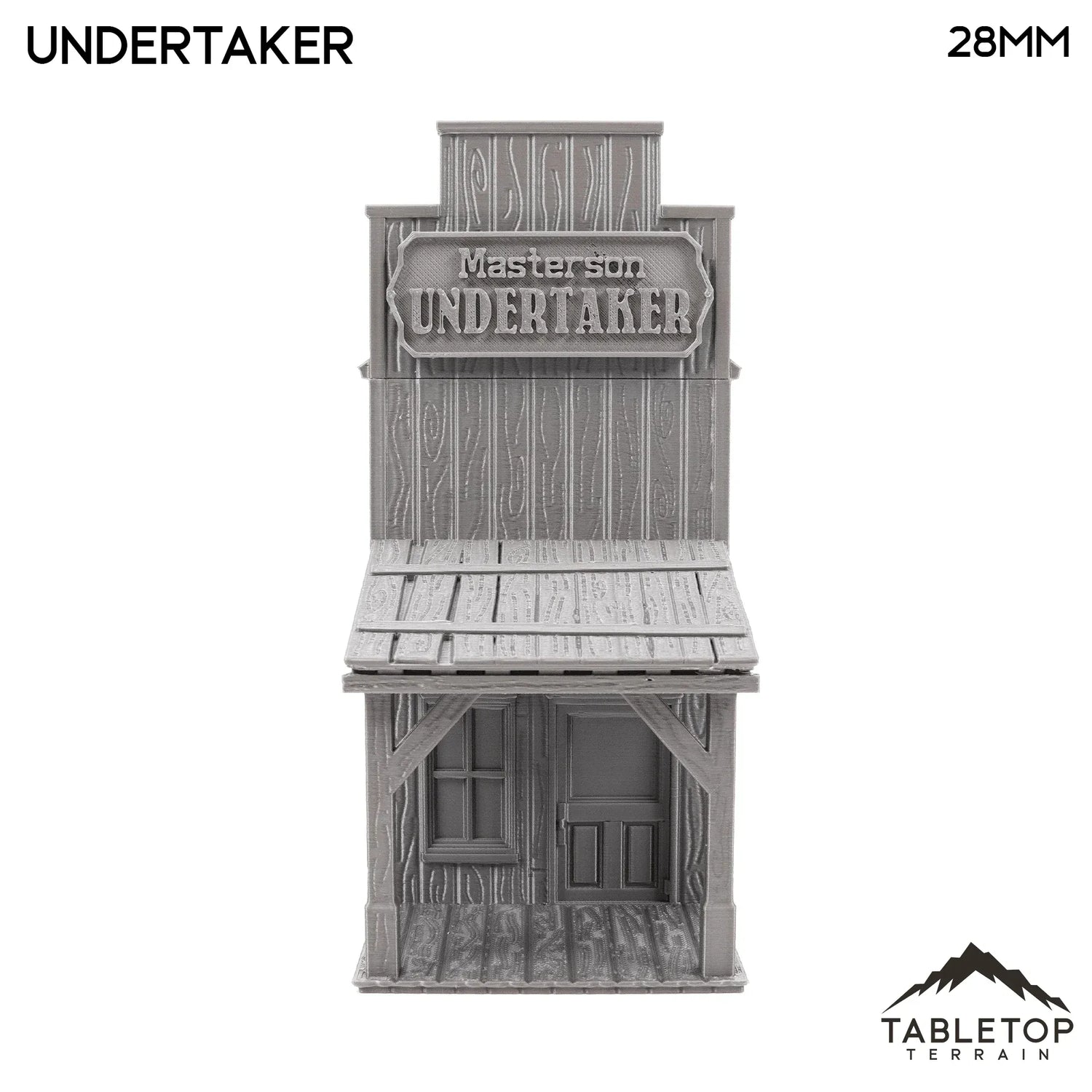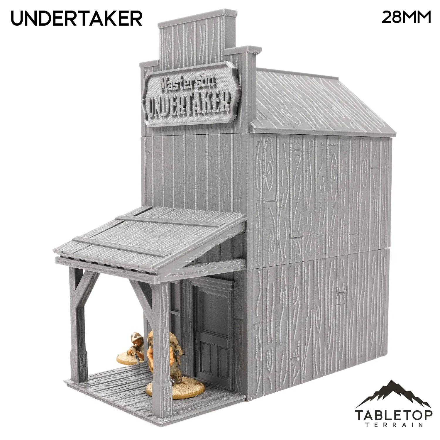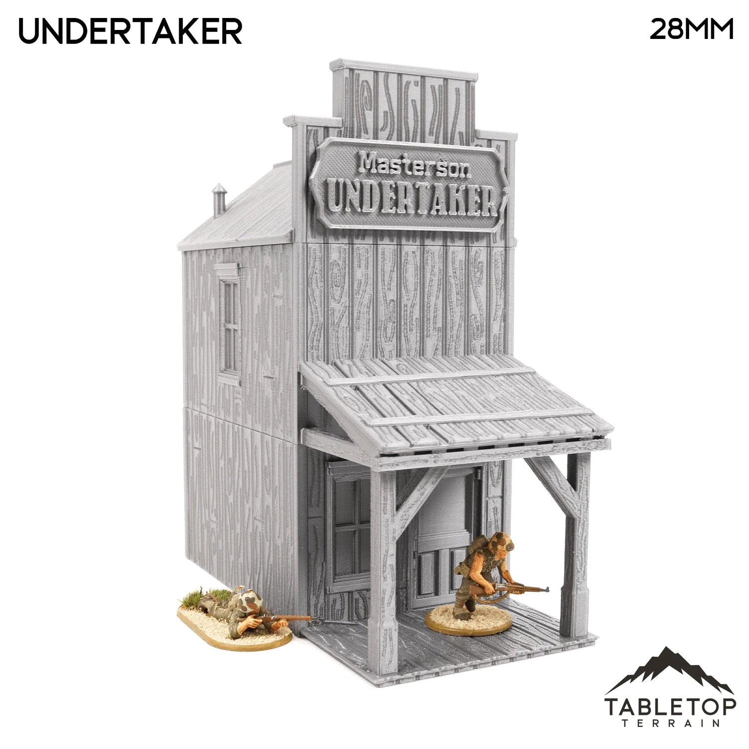 The Undertaker es una adición fantástica para tu mesa con temática occidental. Funcionaría muy bien para Wild West: Exodus u otros juegos occidentales. The Undertaker viene con o sin piso. Si lo pides sin suelo, el interior quedará hueco y no se podrán colocar minis en el interior excepto a nivel del suelo. Está impreso en 3D en escalas de 40 mm, 32 mm y 28 mm con una resolución de 0,2 mm.