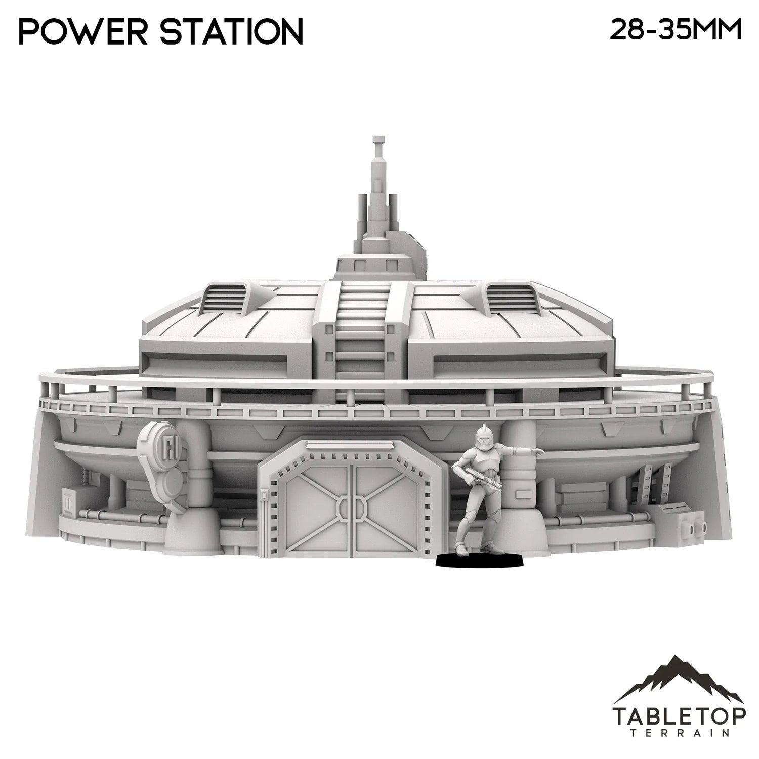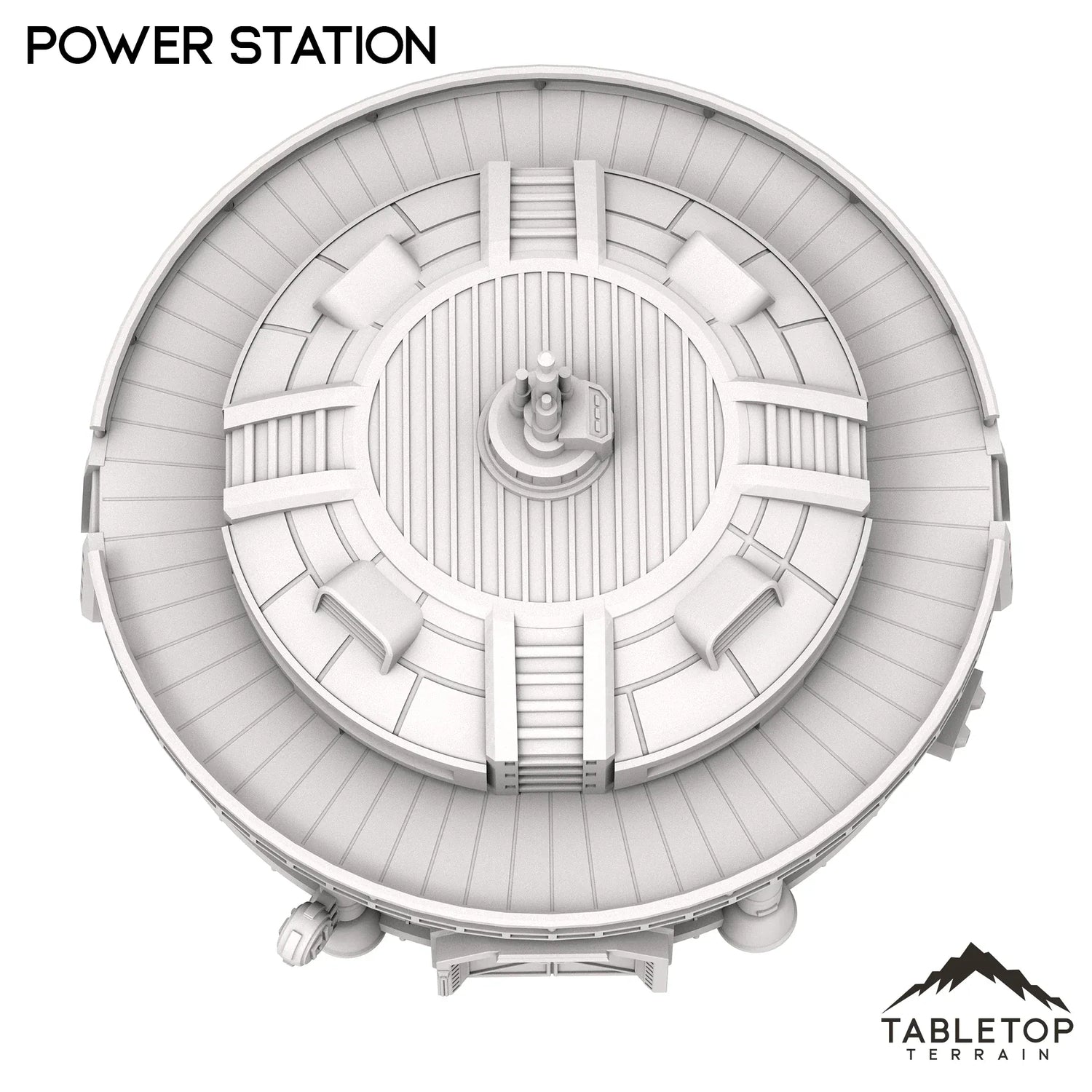 La central eléctrica es un set de una sola pieza que funciona en un paisaje urbano de ciencia ficción más grande o como una ubicación independiente. La central eléctrica tiene escaleras incorporadas en el costado que llevan a la plataforma y una barandilla que rodea la parte superior del modelo. La central eléctrica está diseñada para juegos de mesa de ciencia ficción, pero podría funcionar con cualquier género.