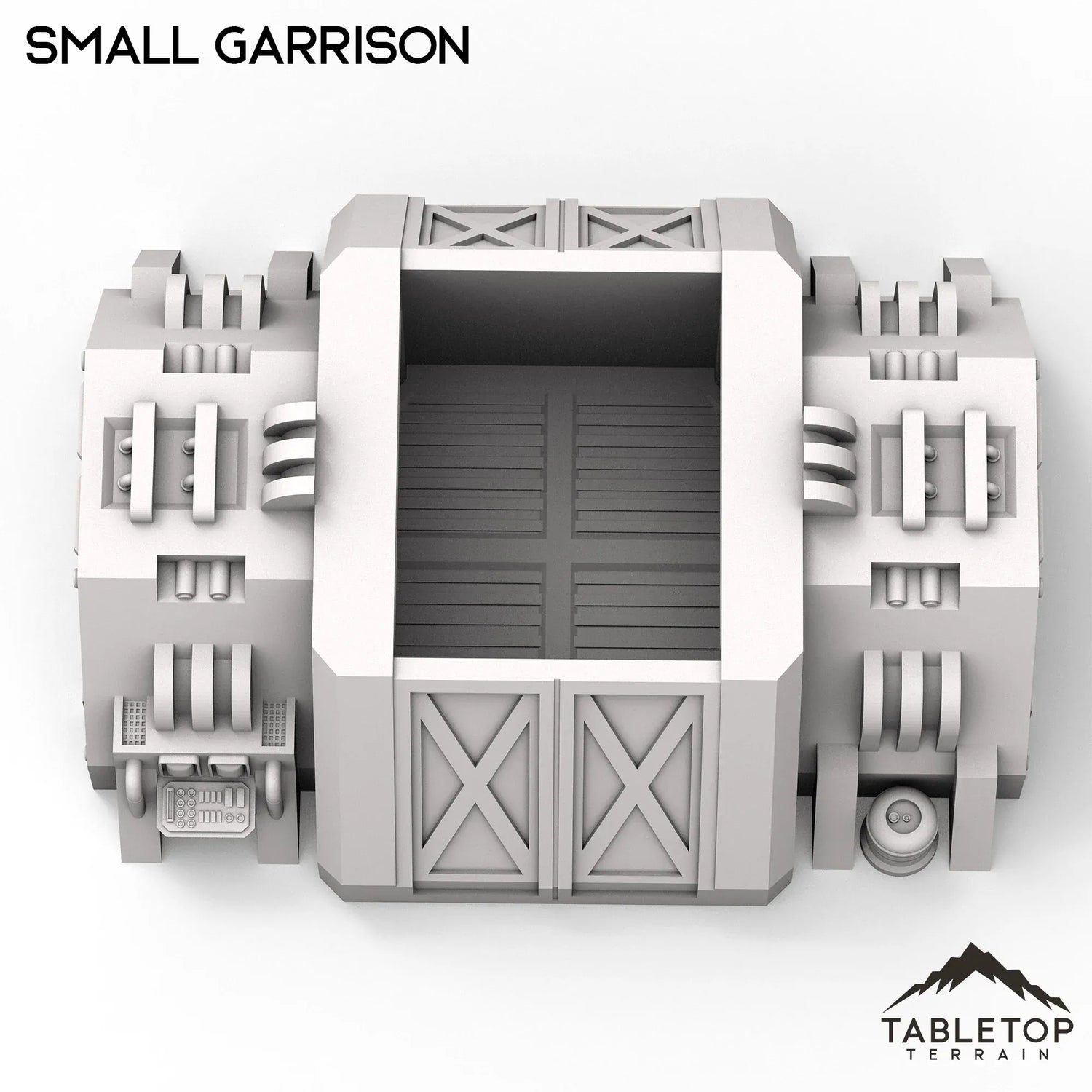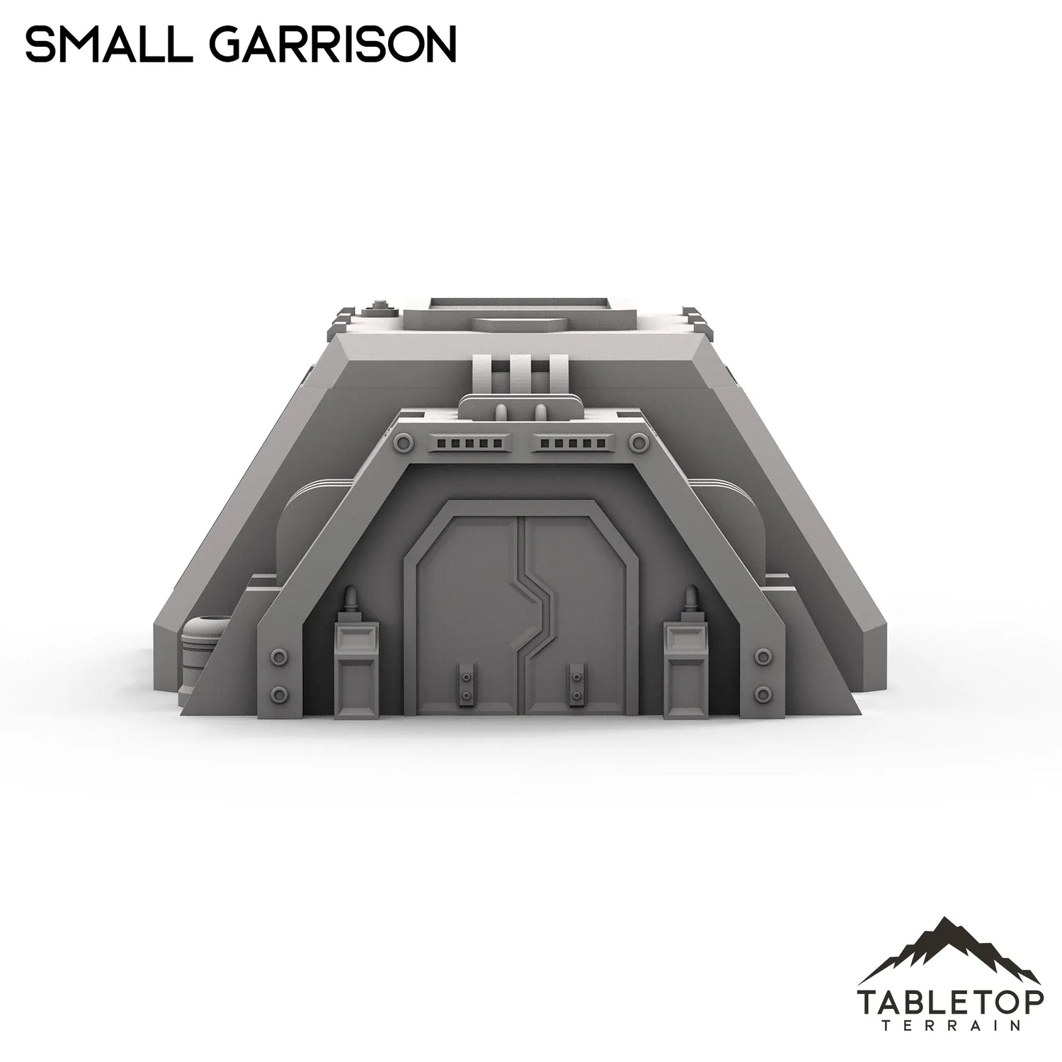 La Stronghold Small Garrison es un pequeño búnker de avanzada militar. Tiene techo desmontable y puertas saledizas a los lados. Funcionaría para cualquier juego de guerra de ciencia ficción. Recomendamos la escala de 28-35 mm para Legion y la escala de 40 mm para Shatterpoint.