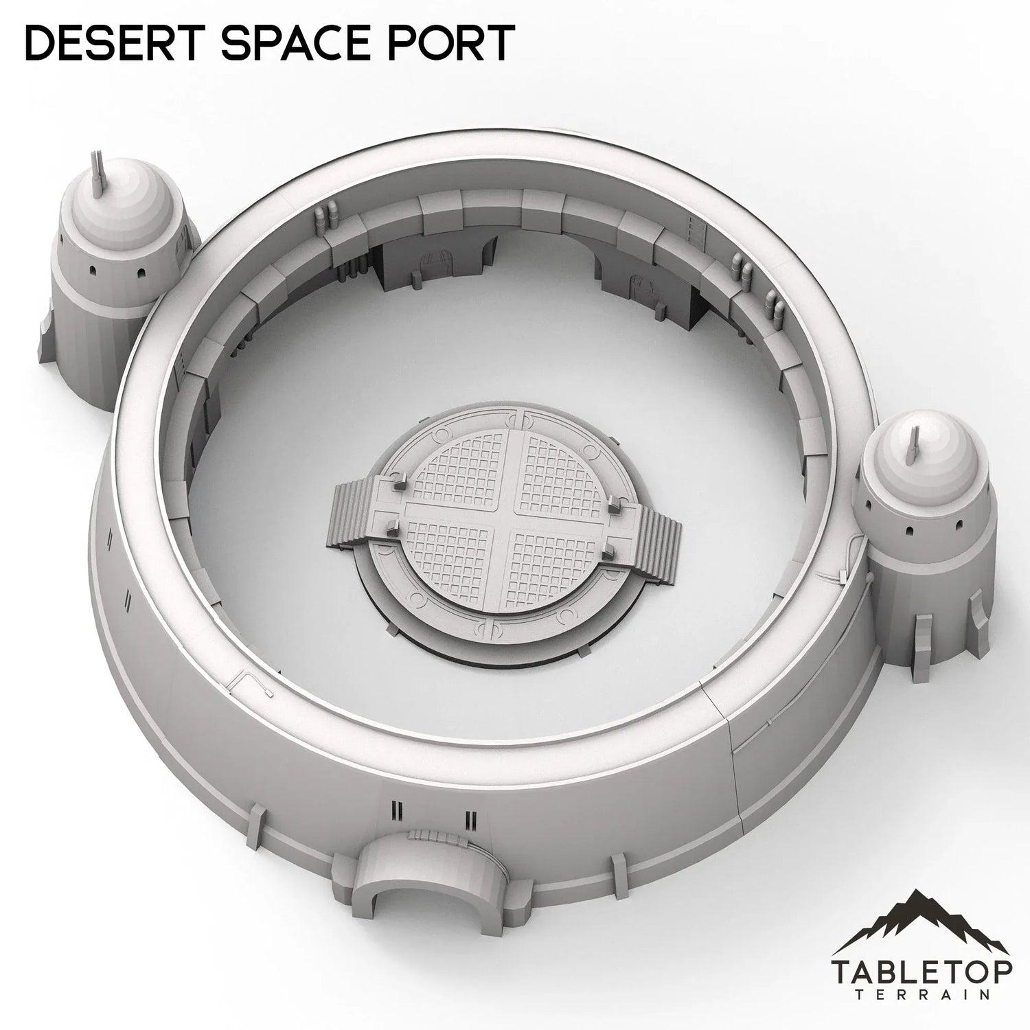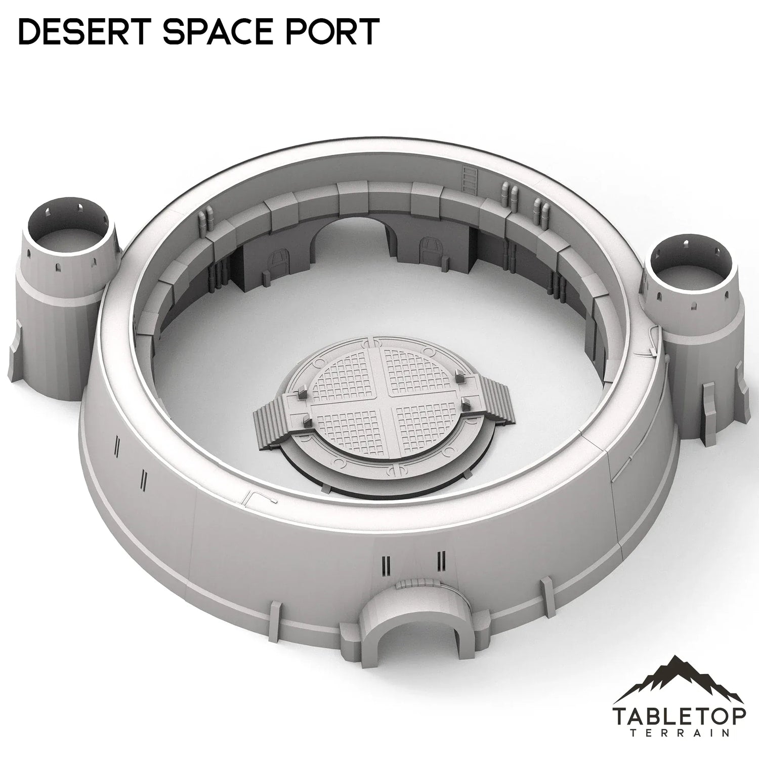 El Puerto Espacial del Desierto es un edificio circular con pistas de aterrizaje y torres de vigilancia . Funcionaría perfectamente para Star Wars Legion, Shatterpoint u otros juegos de ciencia ficción. El puerto espacial está impreso en escalas de 40 mm, 28-35 mm (1:47), 20 mm y 15 mm; otras escalas están disponibles a pedido. Se recomienda la escala de 40 mm para Shatterpoint y la escala de 28-35 mm para Legion.