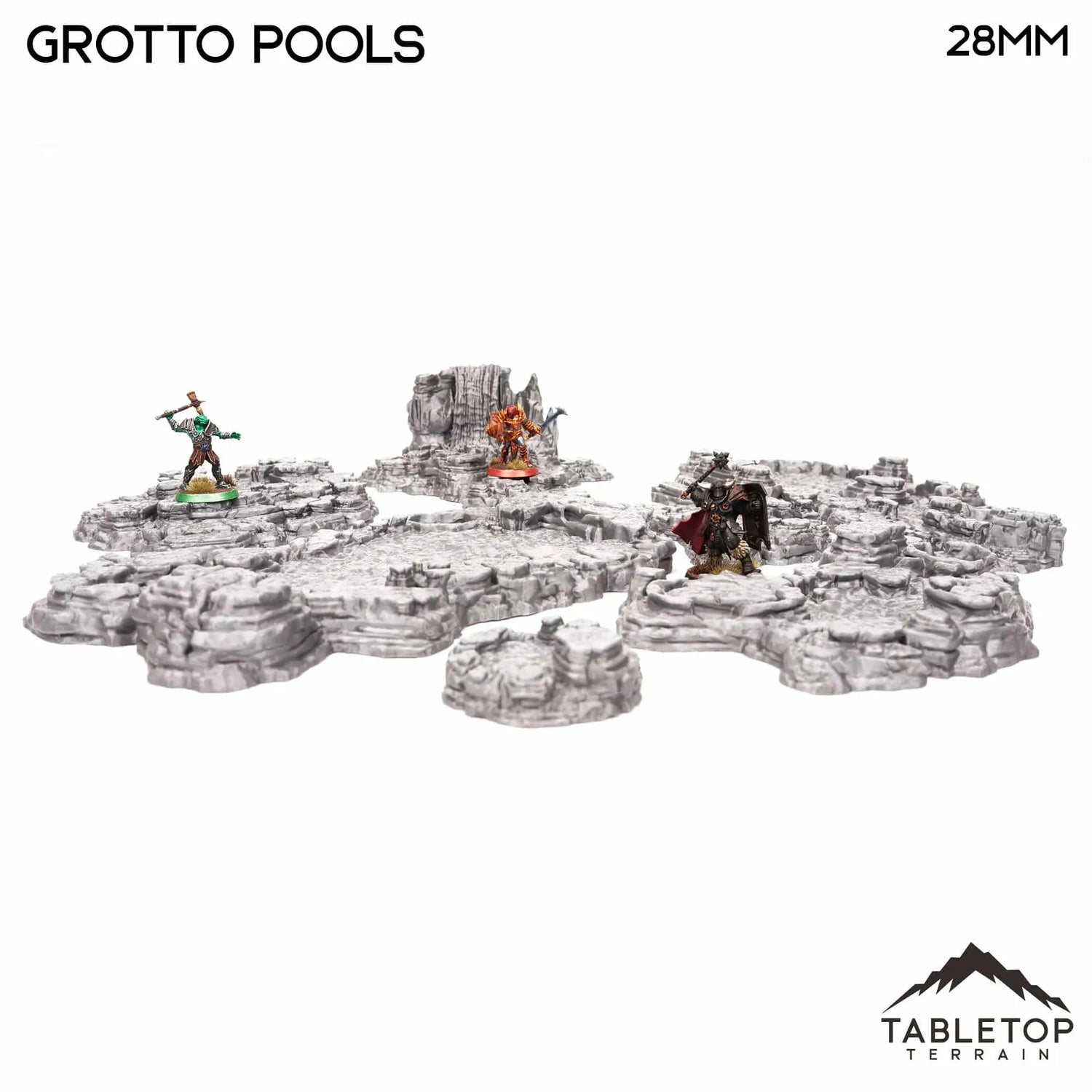 Los Pozos de Gruta son un conjunto de terreno disperso que incluye pozas de caverna en piezas de terreno disperso. Están diseñados para integrarse con el resto del conjunto Gruta de Goblins y funcionan a la perfección con los Suelos y Muros de Gruta. Son perfectos para Dungeons and Dragons DND, Age of Sigmar AOS, Kings of War, Malifaux, Frostgrave y otros juegos de fantasía.