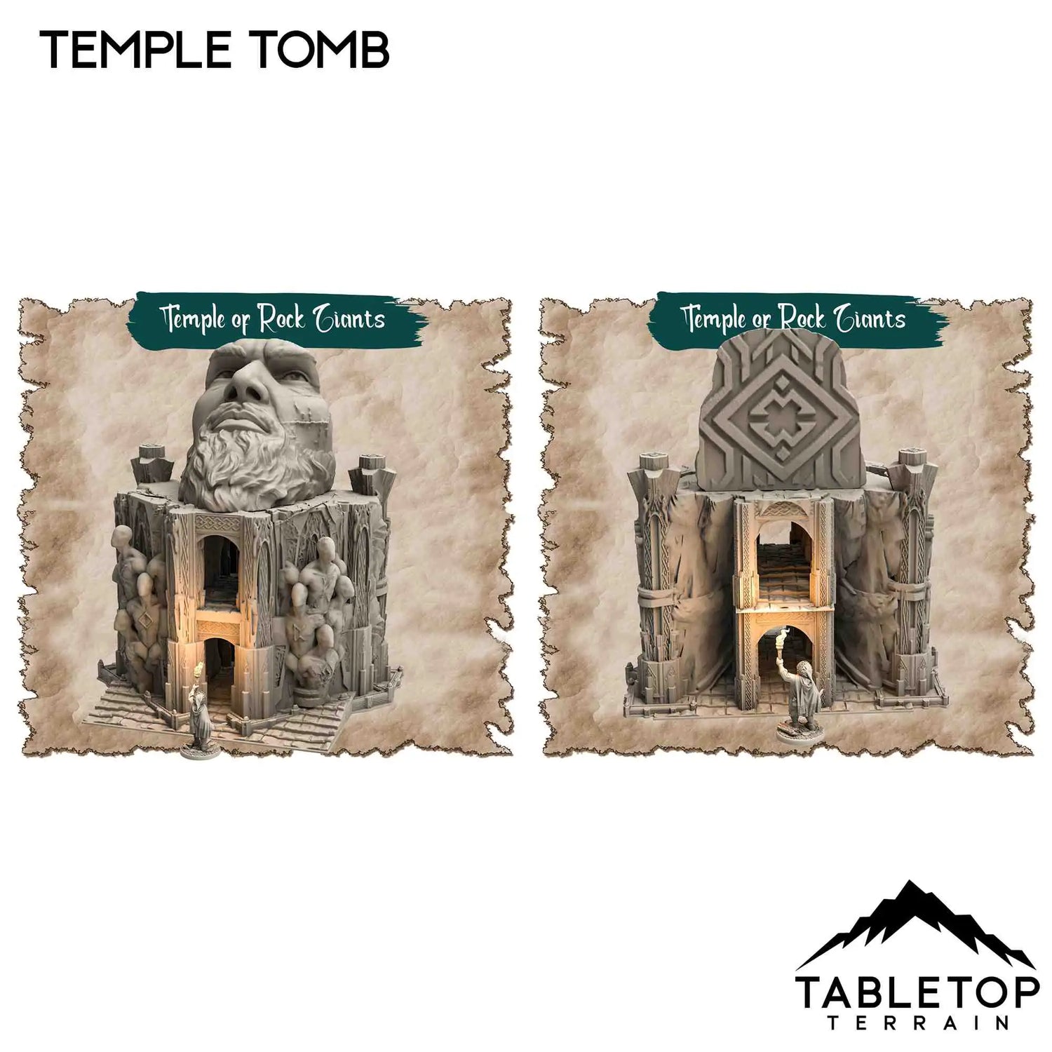 El Templo de los Gigantes de Roca es un conjunto de terreno de mazmorra temático. Compuesto por varias piezas, puedes crear una experiencia de mazmorra completa a partir de este conjunto. Combina detalles de fantasía y ciencia ficción, lo que lo hace ideal para ambos géneros.