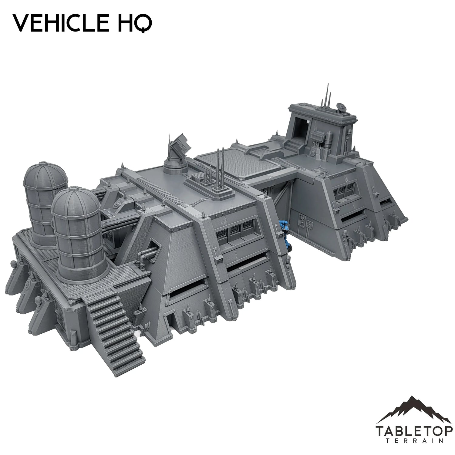 El cuartel general de vehículos es un edificio enorme y fuertemente blindado. El conjunto tiene grandes puertas con artillería, puesto de vigilancia y un radar satélite en la azotea, junto con 2 grandes silos de combustible montados en el lateral del edificio. Tanto el interior como el exterior de esta estructura están detallados y estilizados, y están hechos para poder albergar una gran cantidad de minis en su interior. El Vehicle HQ está diseñado para juegos de guerra de ciencia ficción, pero se puede utilizar con cualquier sistema.