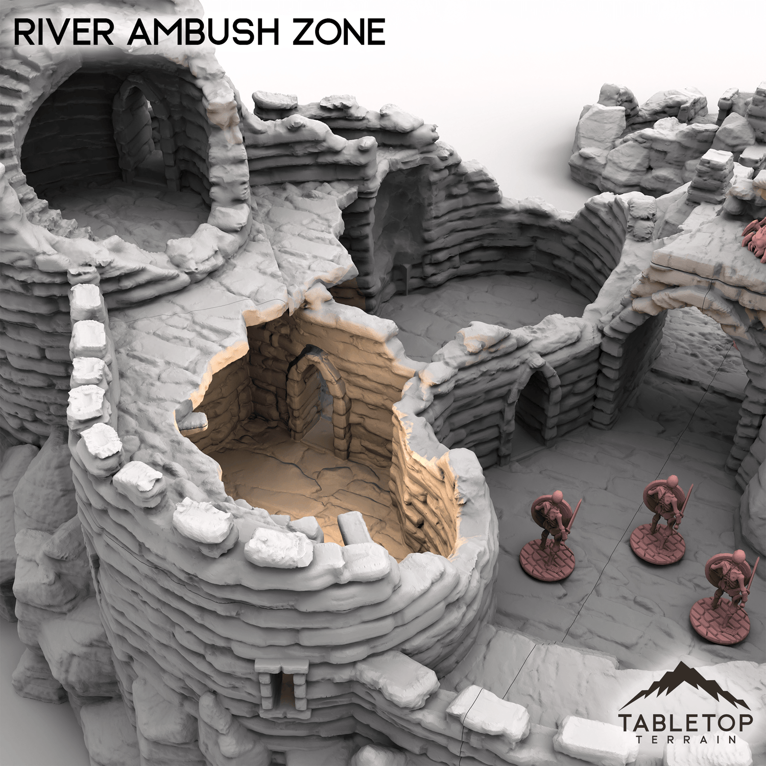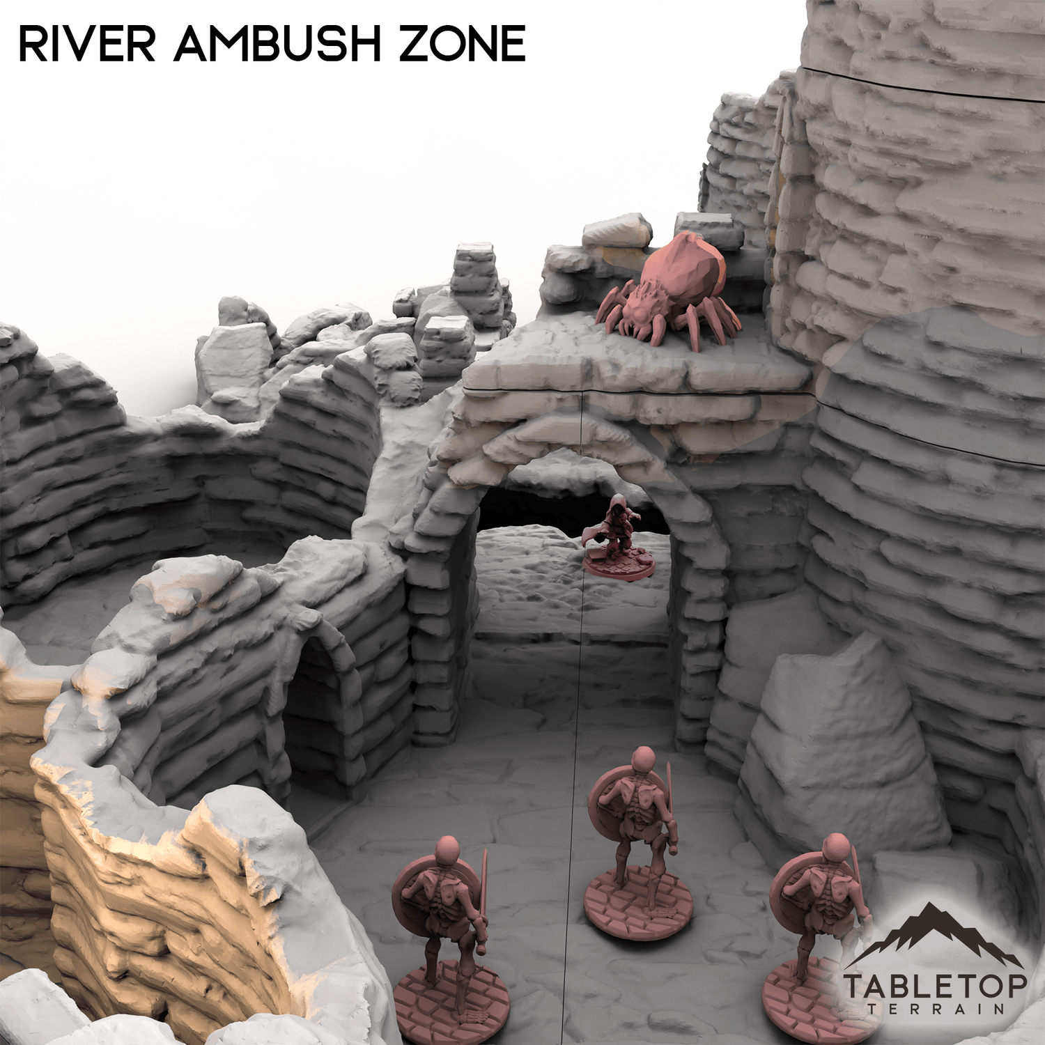 La Tumba Antigua del Desierto es un conjunto enorme y extenso que contiene 3 tumbas más pequeñas diferentes con espacio en el interior. Las 3 tumbas slammer incluyen una esfinge, y cada tumba puede contener miniaturas y tesoros. El diseño de la antigua tumba del desierto se puede ajustar como quieras, según las necesidades de tu mesa. Con casi 5 pies de largo y más de 3 pies de profundidad, este conjunto con sus numerosos elementos ambientales puede convertirse por sí solo en la base de toda una campaña. La antigua tumba del desierto está disponible en escalas de 28 mm, 20 mm y 15 mm.