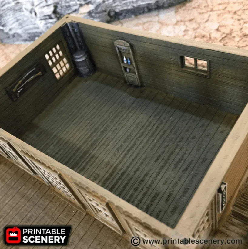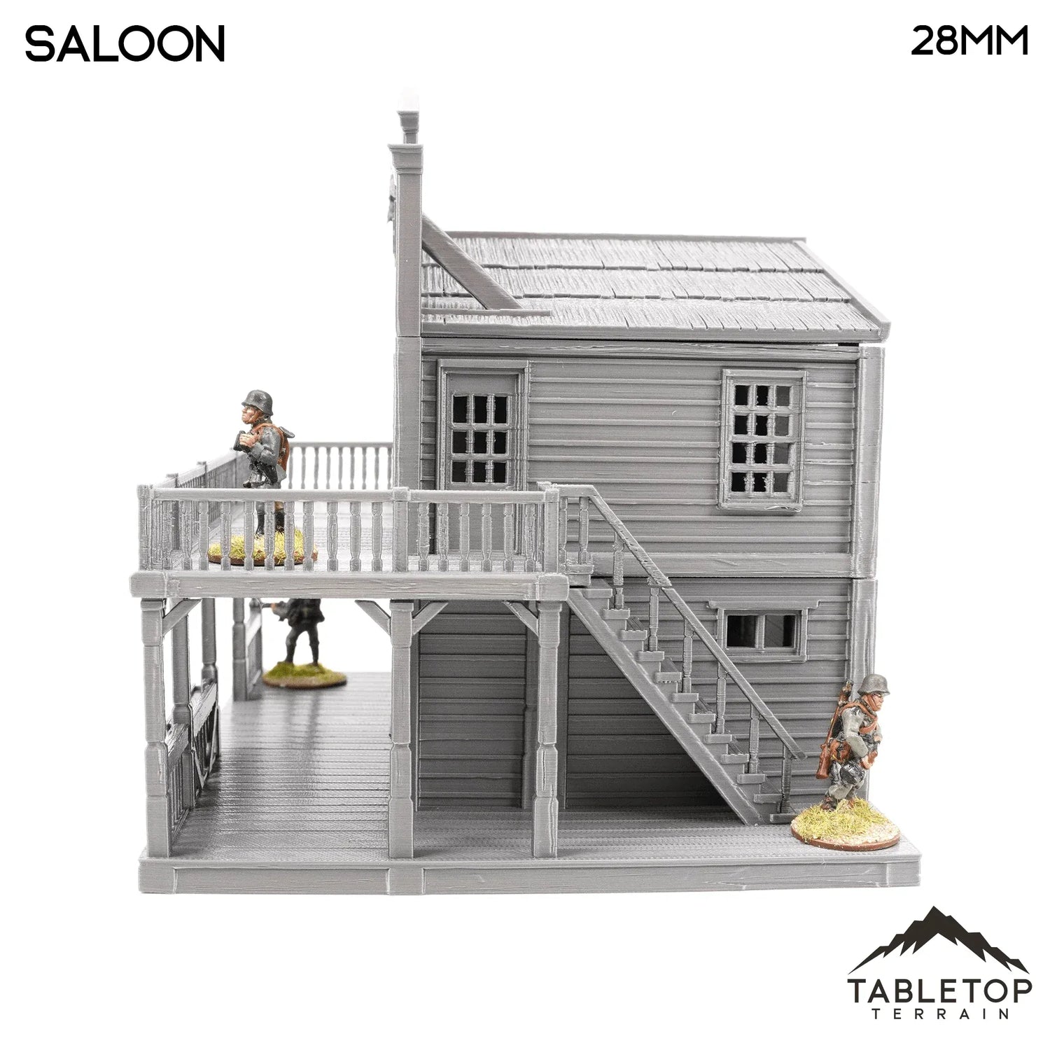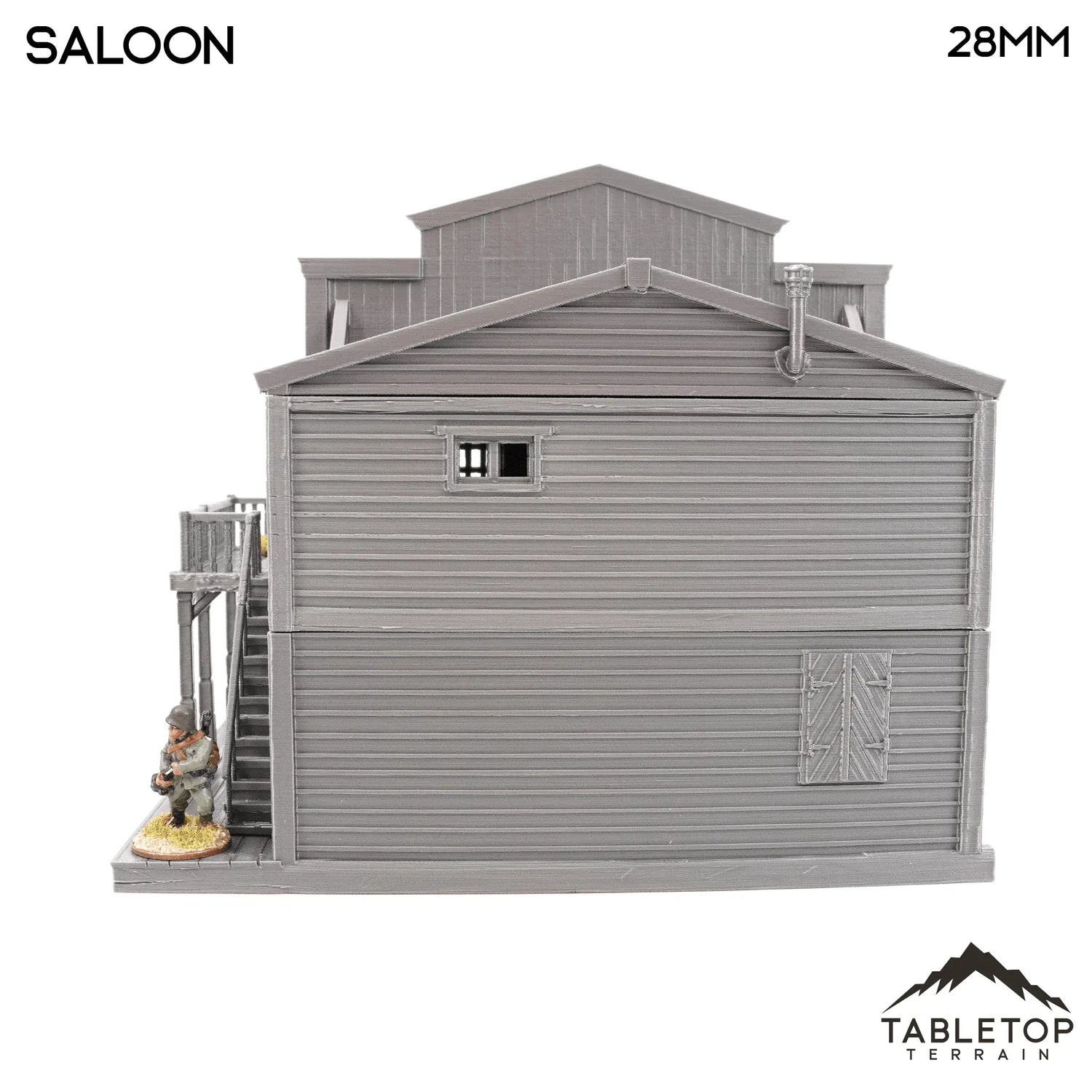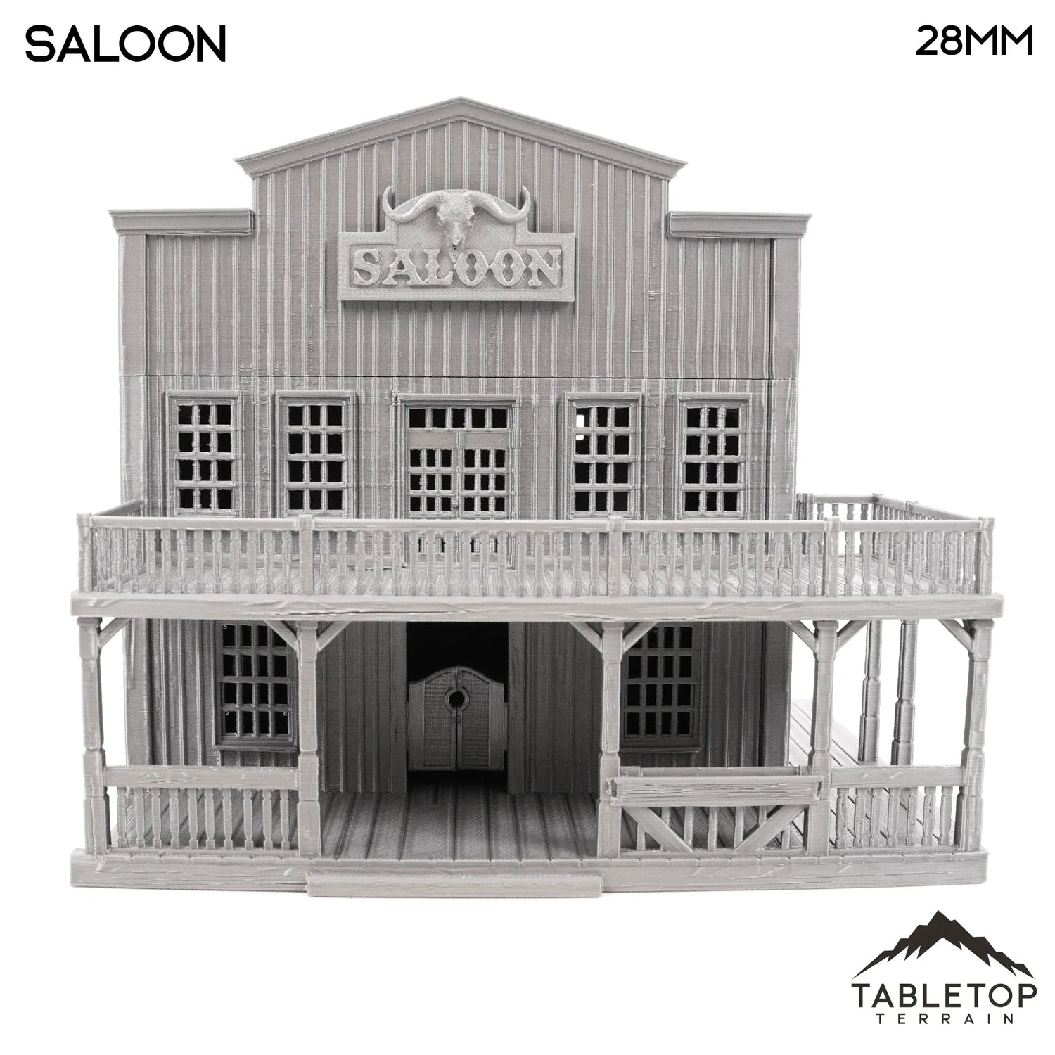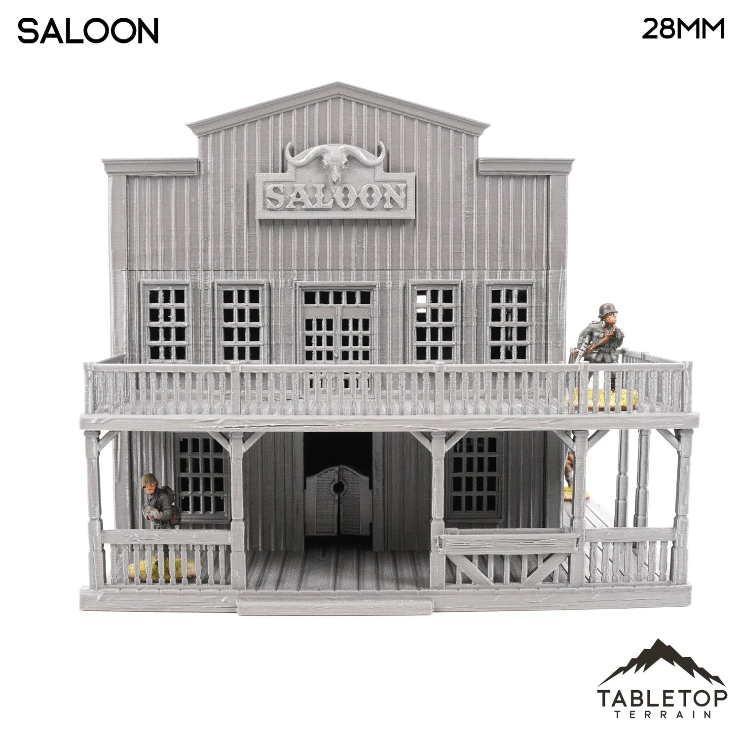 El salón es un edificio inspirado en el Viejo Oeste con varias plantas, techos desmontables e interior detallado. Perfecto para juegos de guerra de mesa inspirados en el Viejo Oeste como Wild West Exodus o Deadlands.