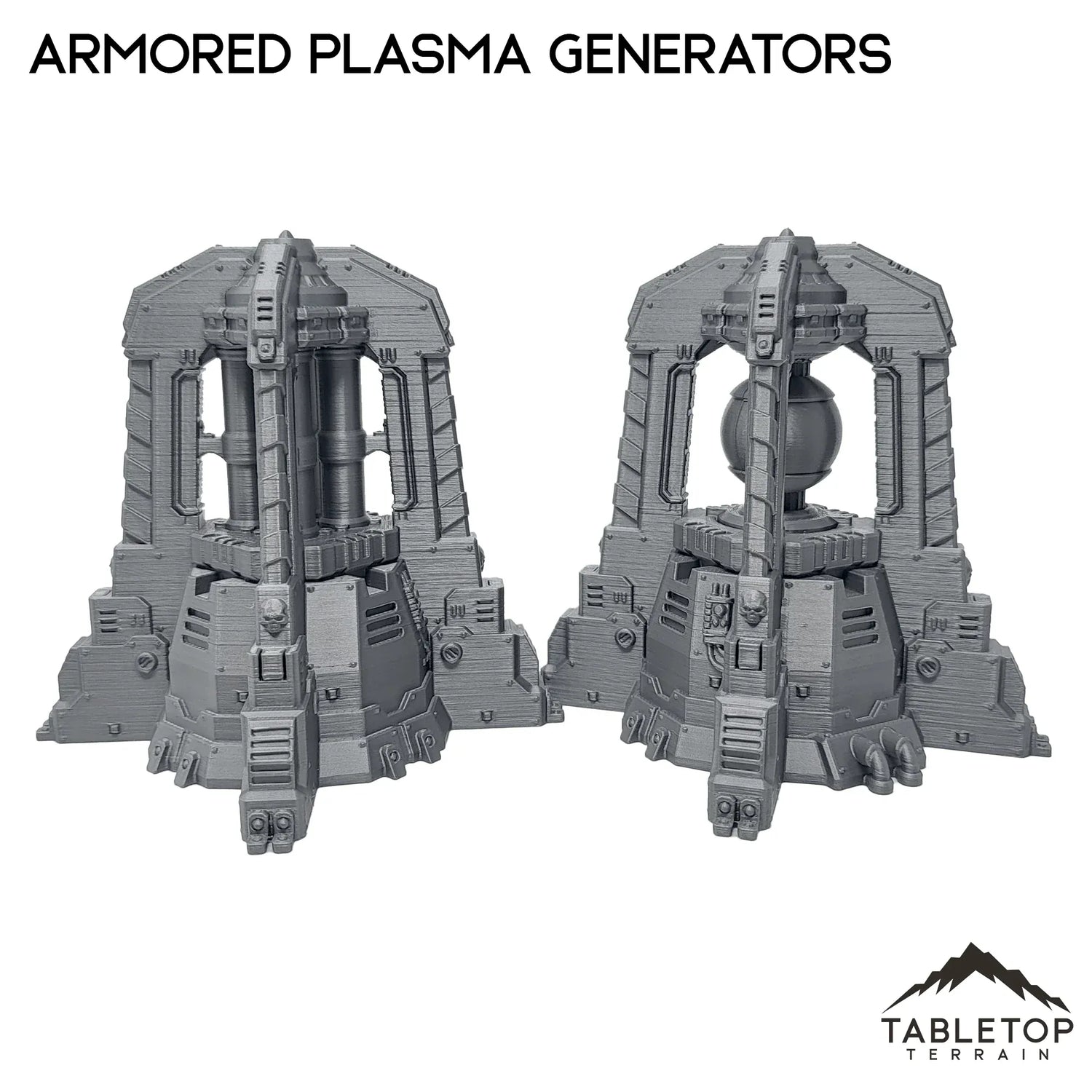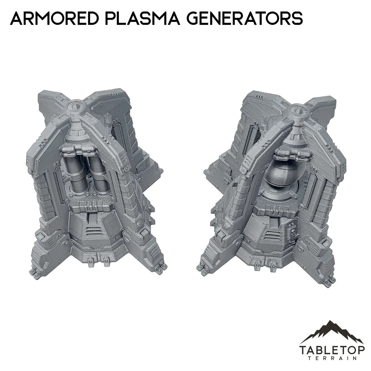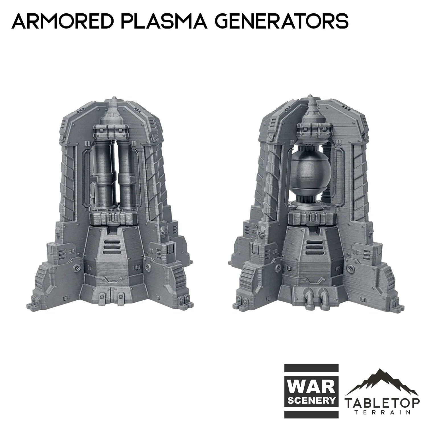 Los Generadores de Plasma Blindados son un conjunto de dos torres que suministran energía a los edificios del cuartel general. Los generadores vienen completamente ensamblados.