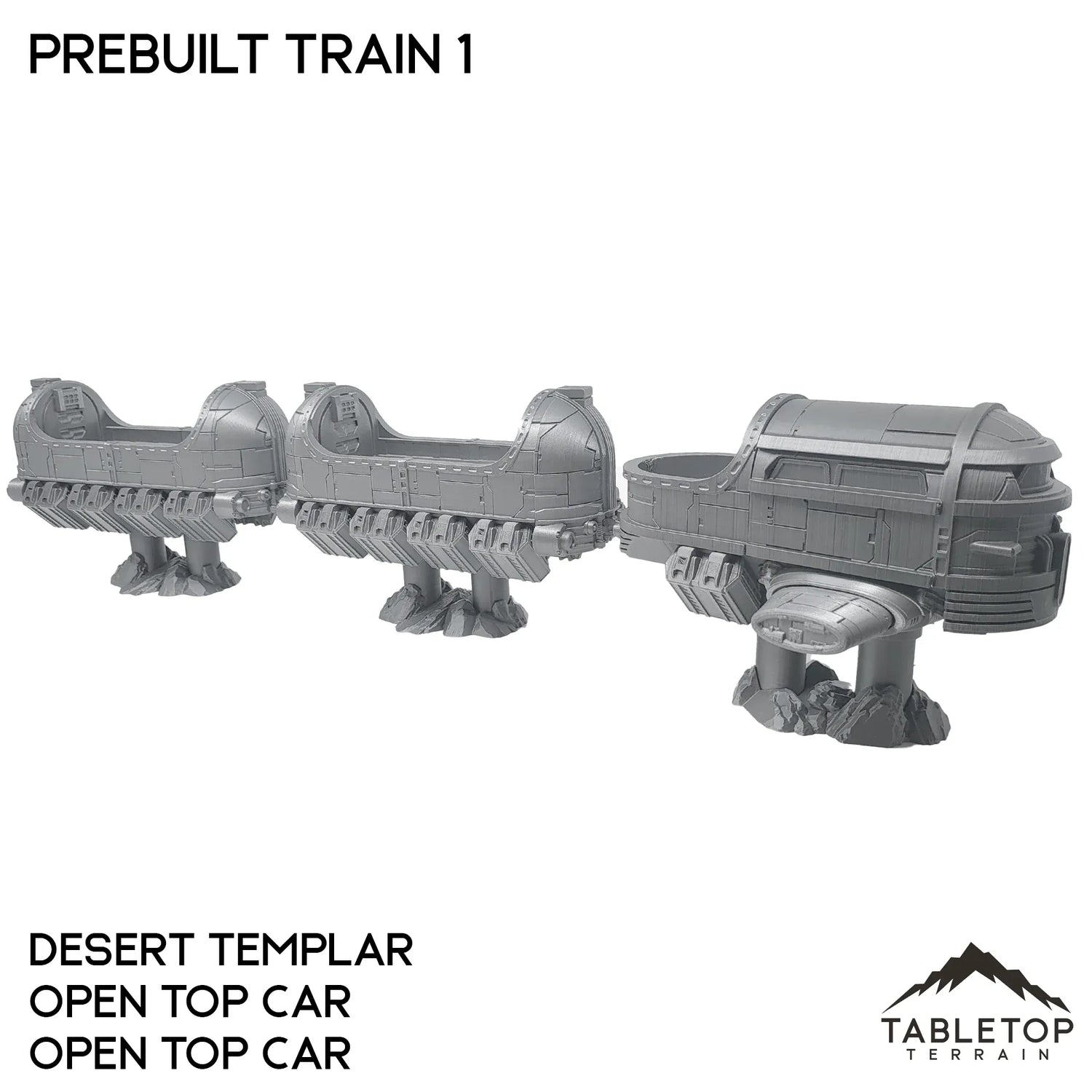 Está disponible un juego de rieles totalmente modular. Usando piezas openlock, puedes crear el diseño perfecto para tu mesa. La vía viene con clips deslizantes que encajan el tren en la vía para que pueda moverse sin riesgo de caerse. Los pilares que elevan la pista tienen 3 pulgadas de altura en la escala de 28-35 mm. En las fotos, esos pilares están apilados dos veces, elevando el riel 6 pulgadas del tablero. Se pueden apilar más alto para obtener una pista más alta, o incluso puedes apilar otra pista una encima de la otra.