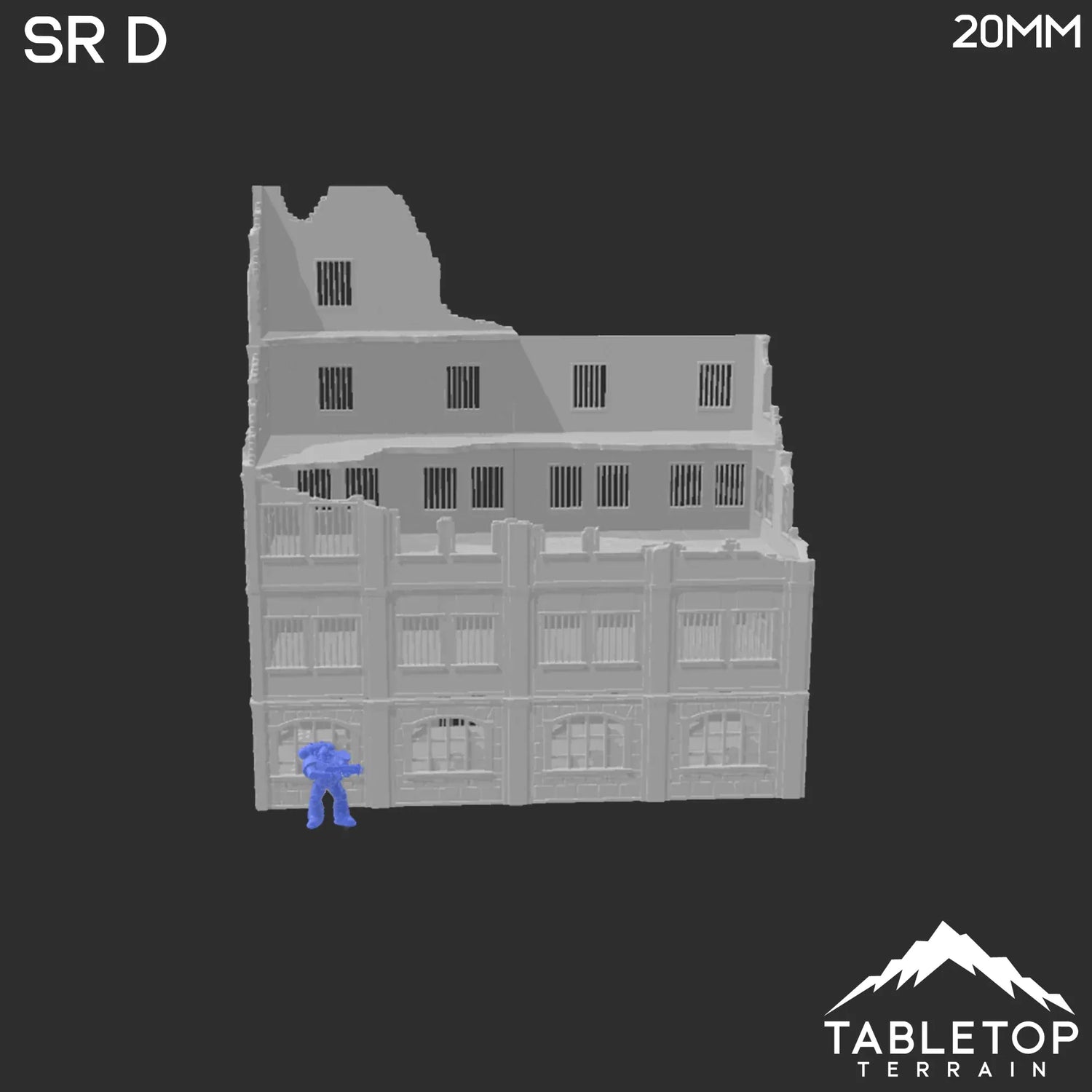 En escala de 28 mm, el edificio mide: 323 x 163 x 348 mm / 12,7 x 6,4 x 13,7 pulgadas.