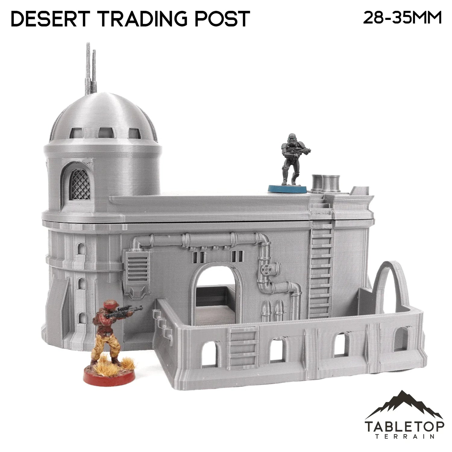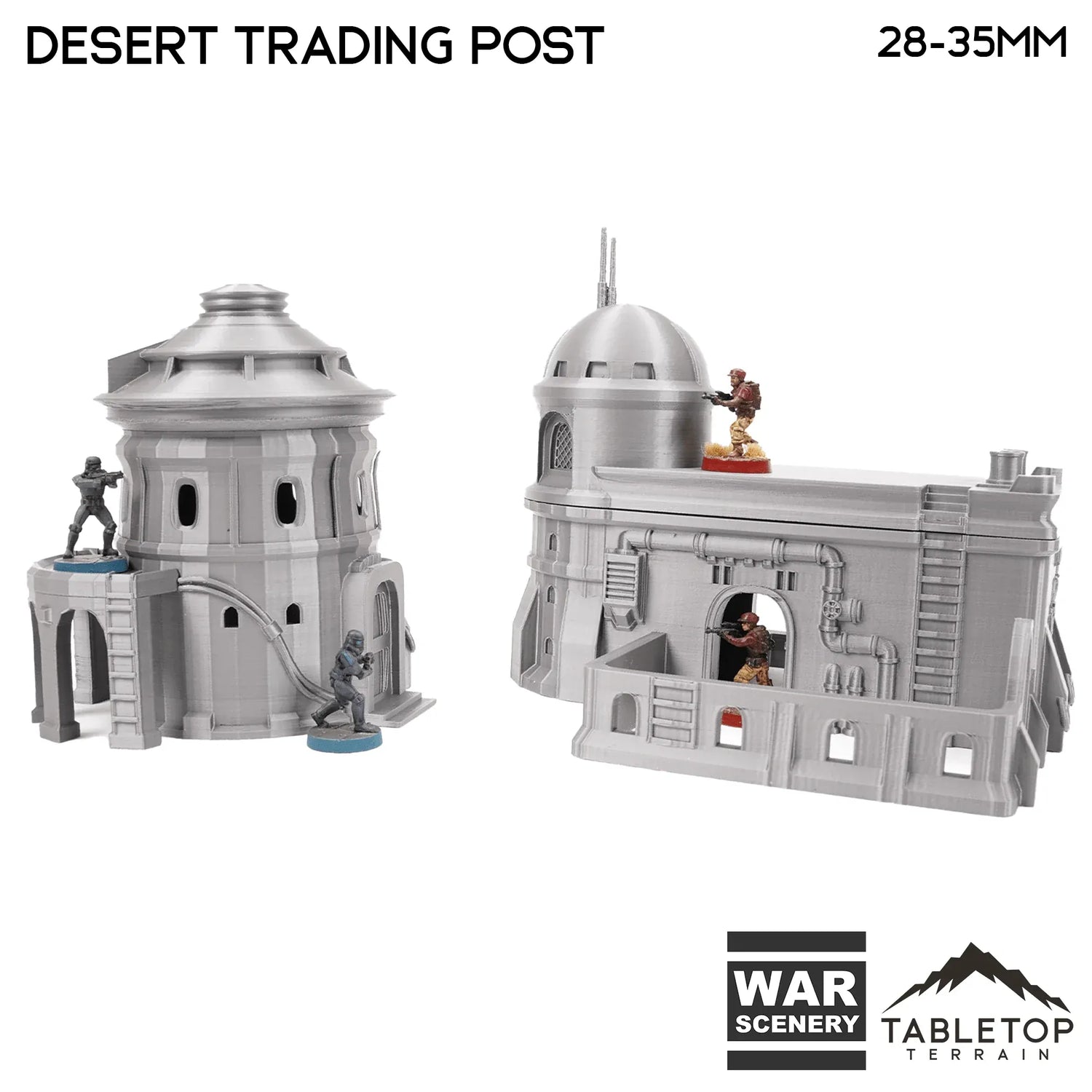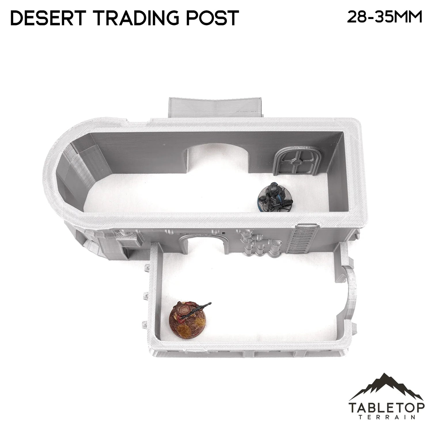 The Desert Trading Post set is a trading building with an attached courtyard and a house with a covered side patio. The Trading house is printed in 40mm, 28-35mm (1:47), 20mm, and 15mm scale.