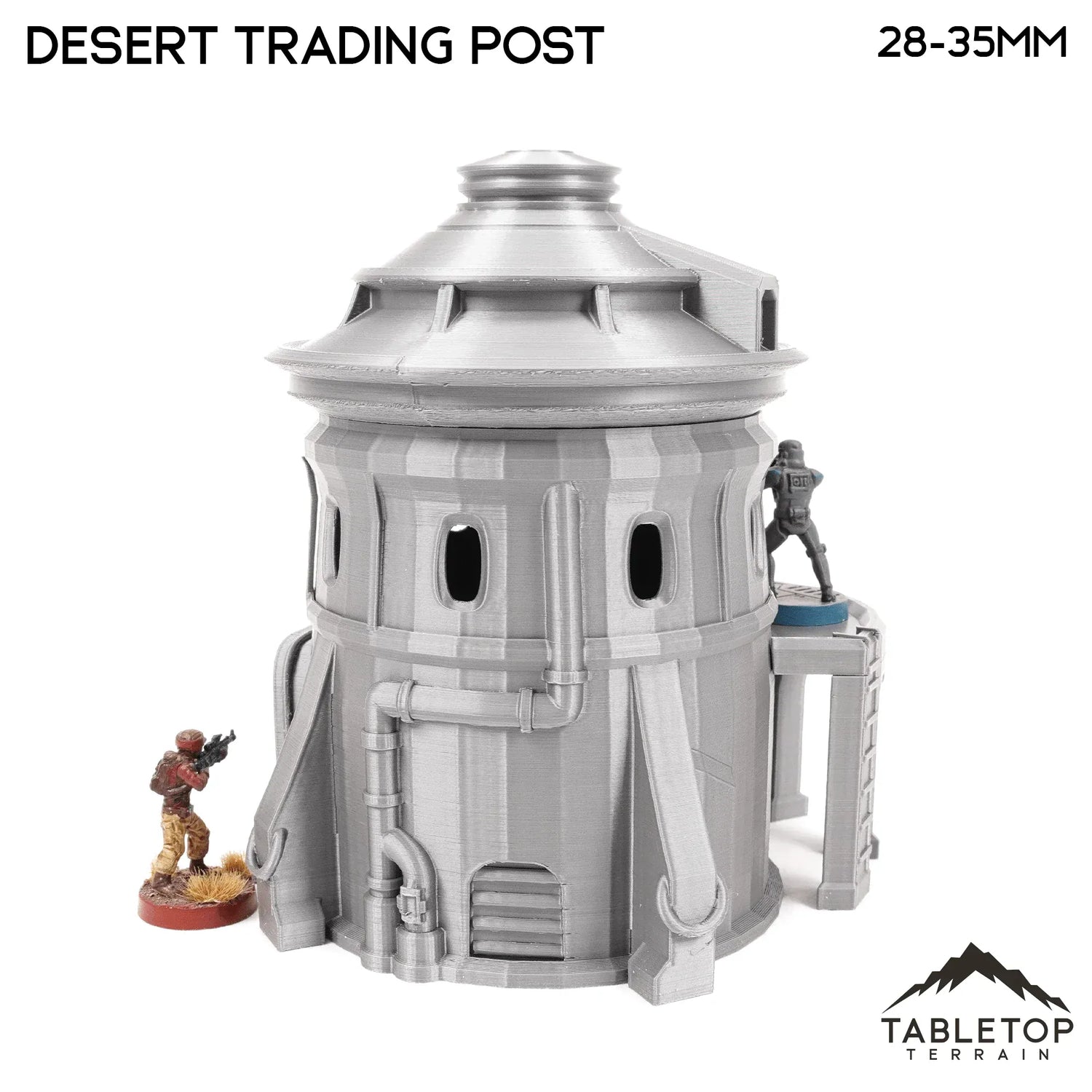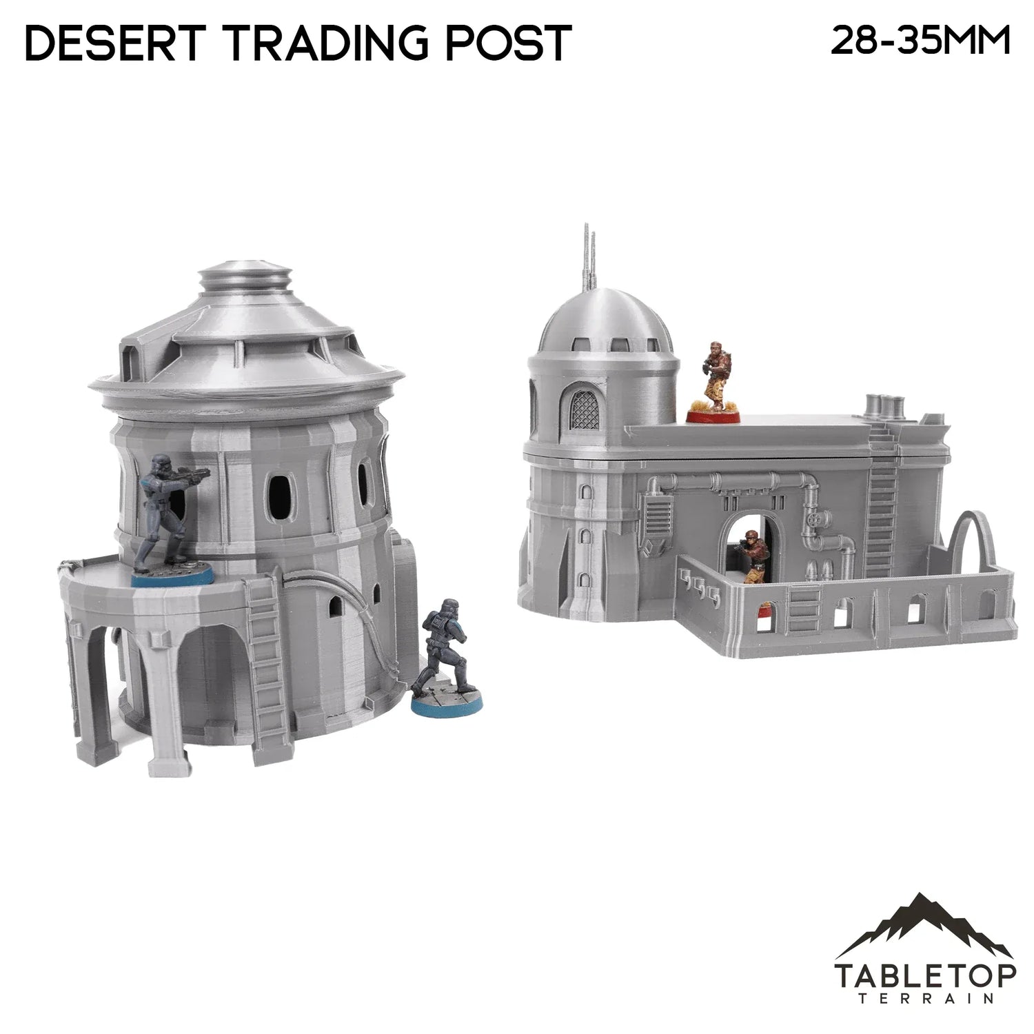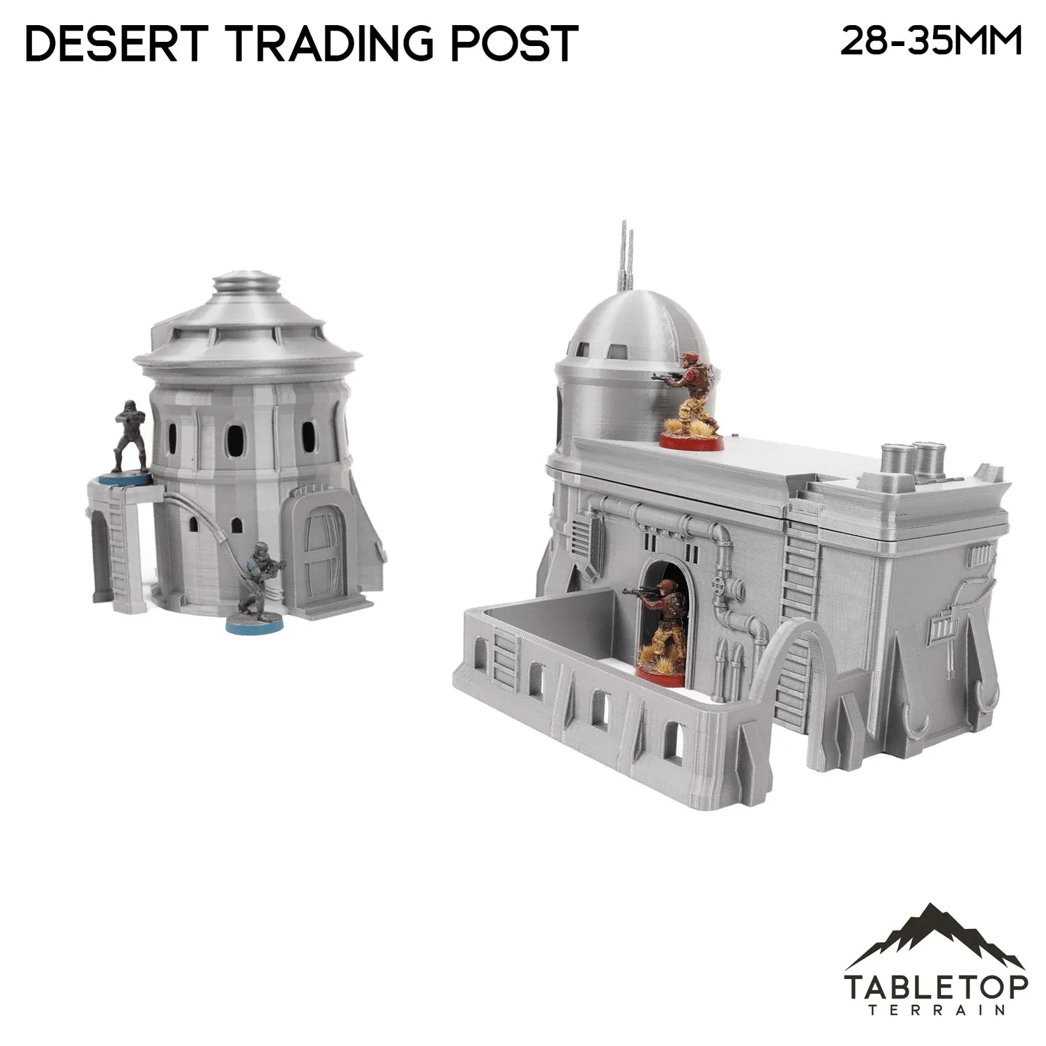 The Desert Trading Post set is a trading building with an attached courtyard and a house with a covered side patio. The Trading house is printed in 40mm, 28-35mm (1:47), 20mm, and 15mm scale.