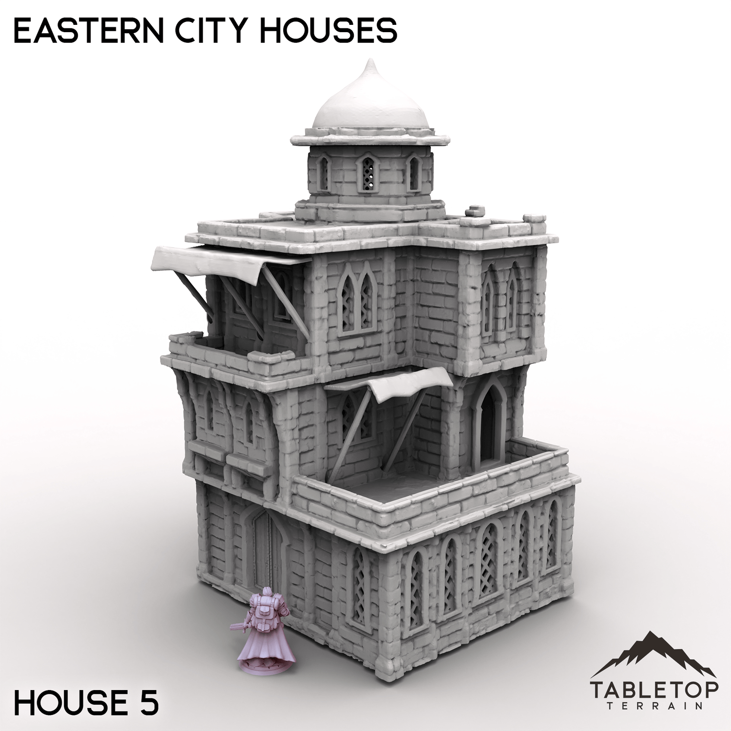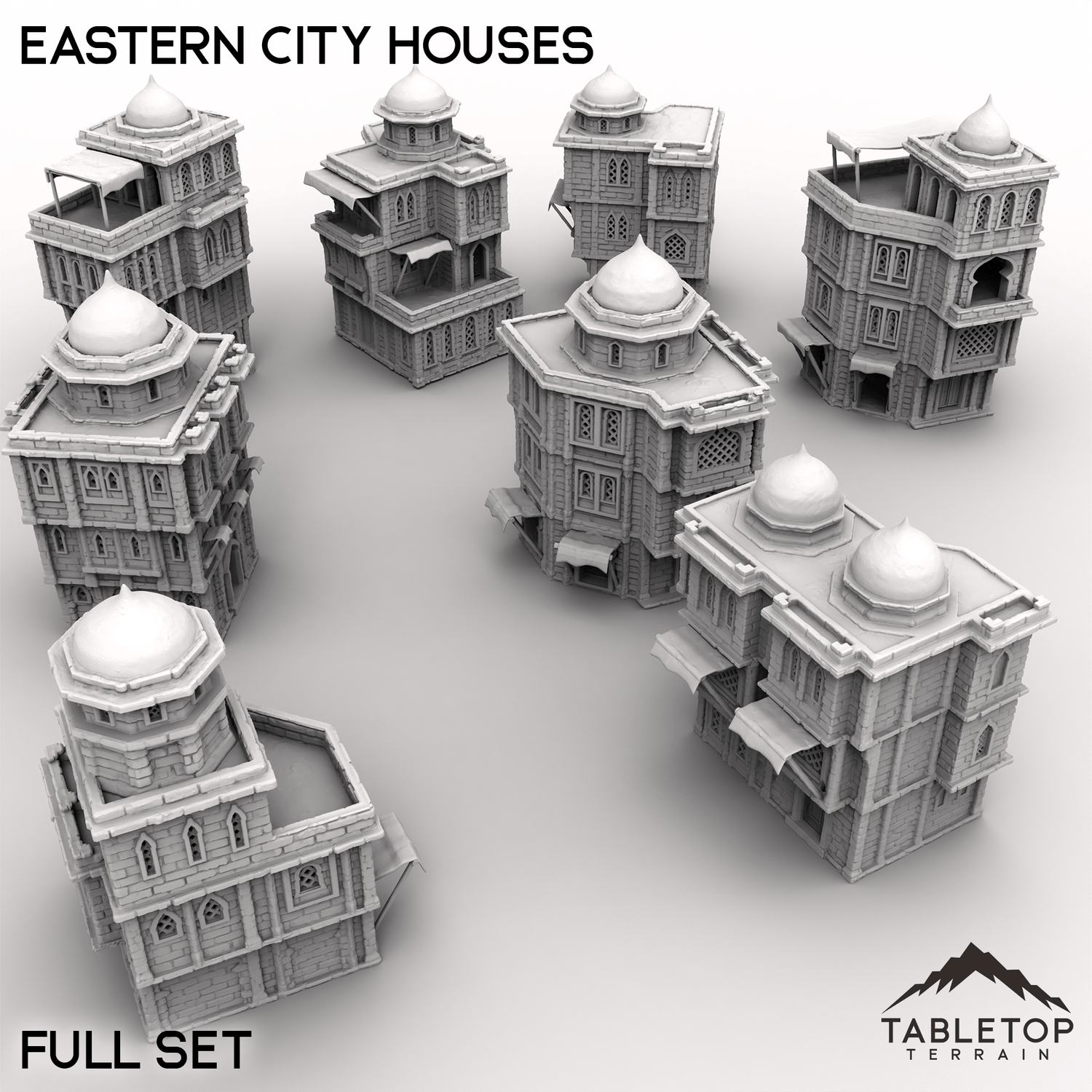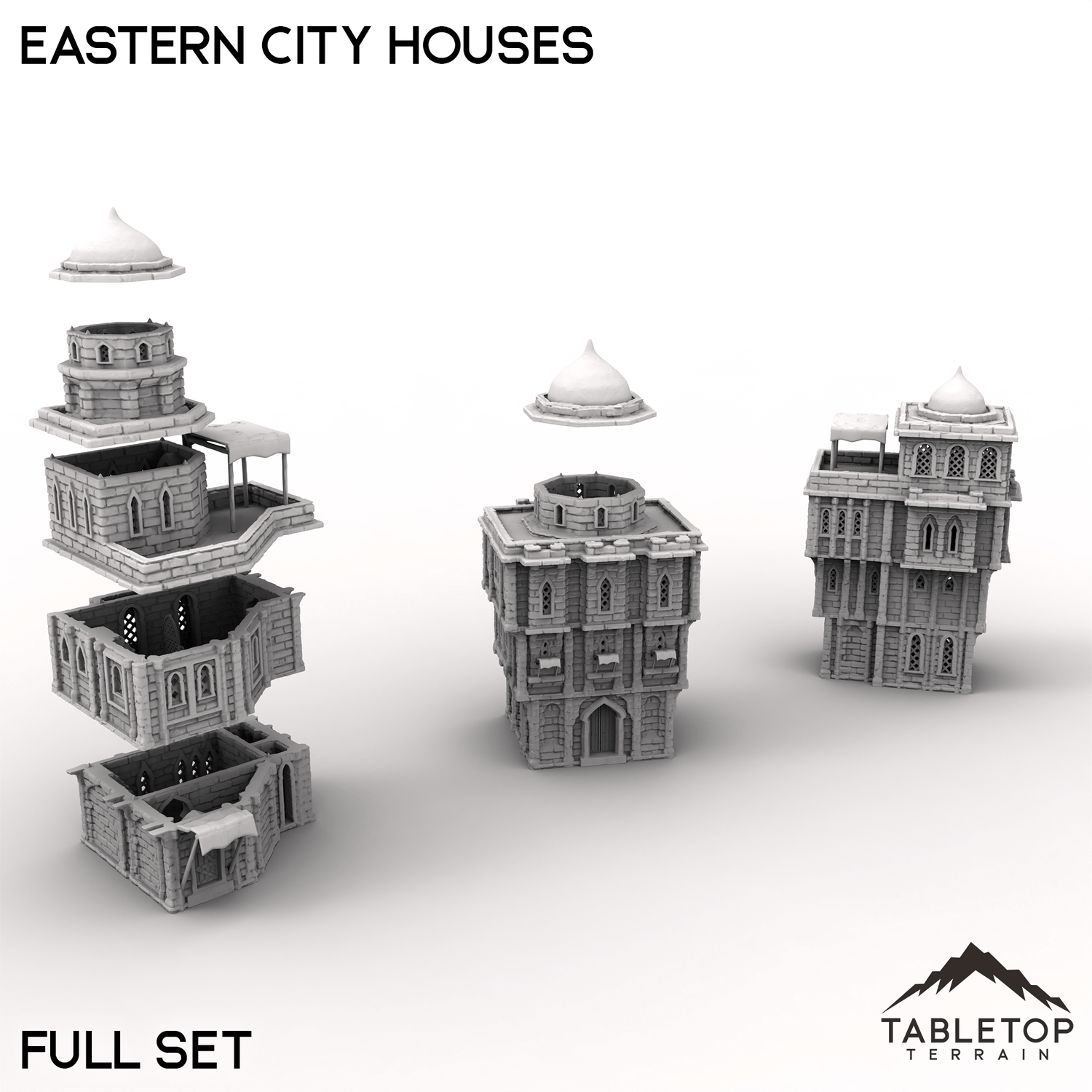 These Eastern City Houses all have a distinctive design, with warm-toned brick walls, domed rooftops, and narrow arched windows framed in intricate stonework. Decorative awnings and balconies add character, giving this set a cohesive, elegant look. Buy each one individually or the whole set at a discount.
