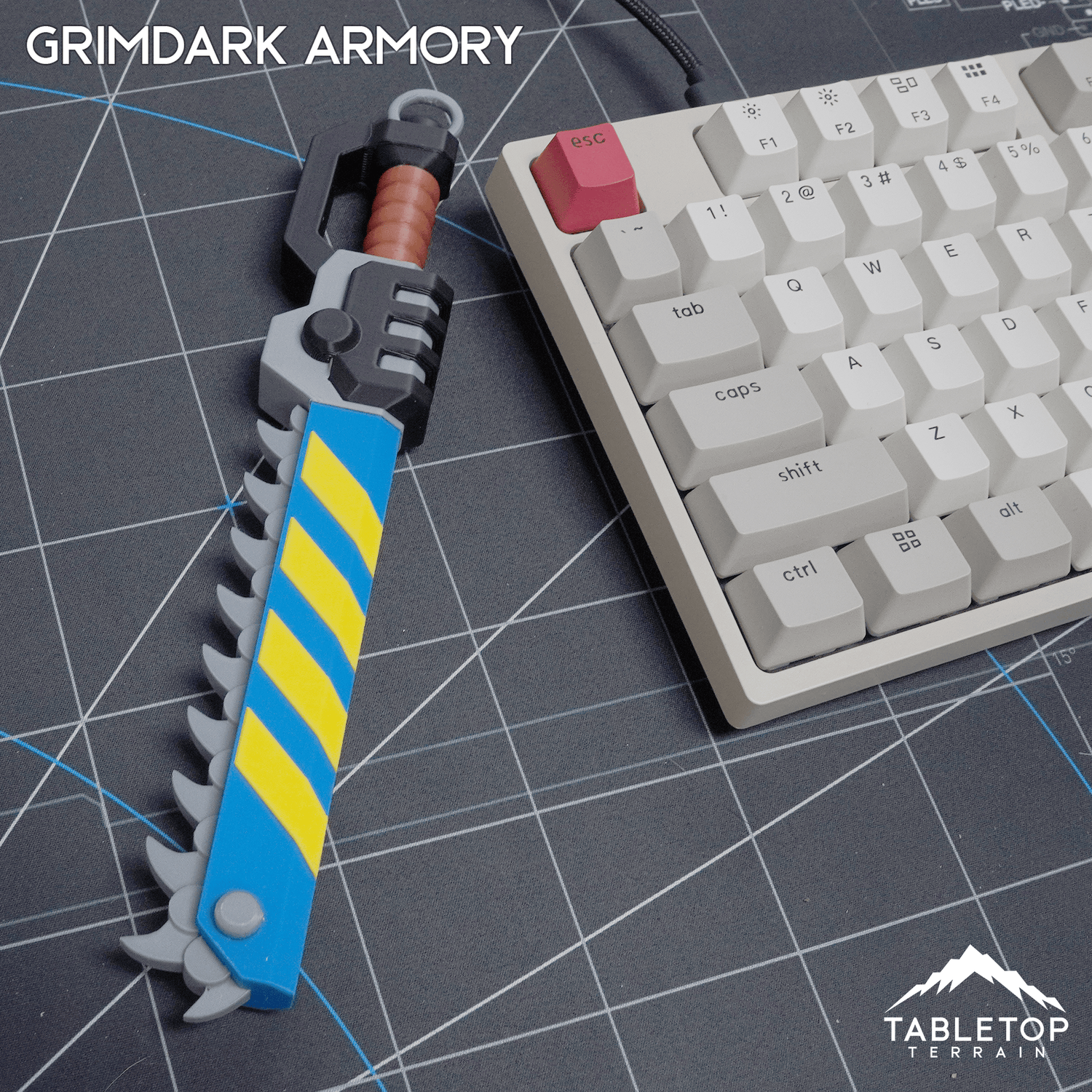 Grimdark Armory – Mini Weapon Props are oversized fully-colored collectible weapon replicas designed for display, collecting, and everyday carry. At roughly 8 inches long, these are not typical keychains — they’re miniature props built to look and feel like artifacts pulled straight from a war-torn future.