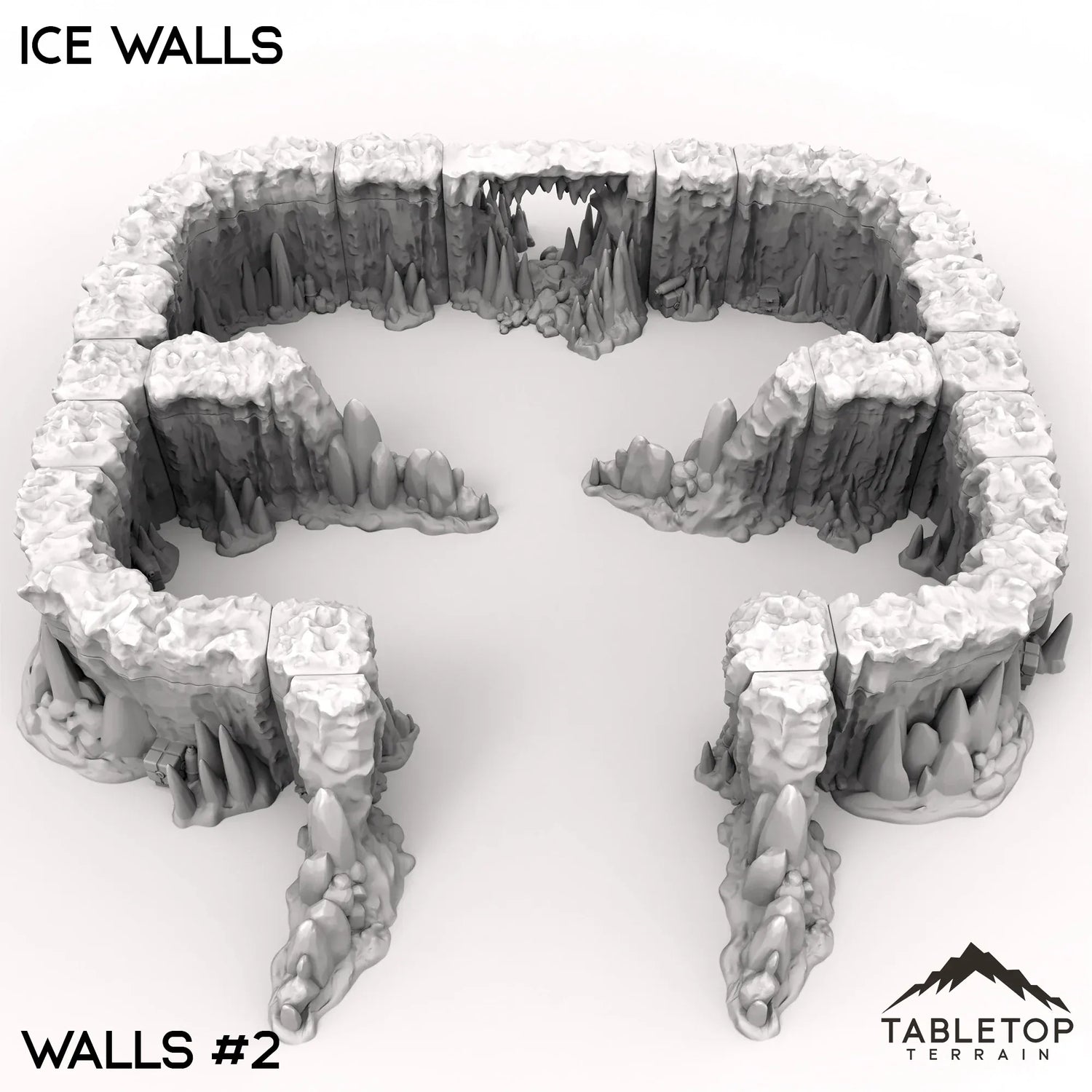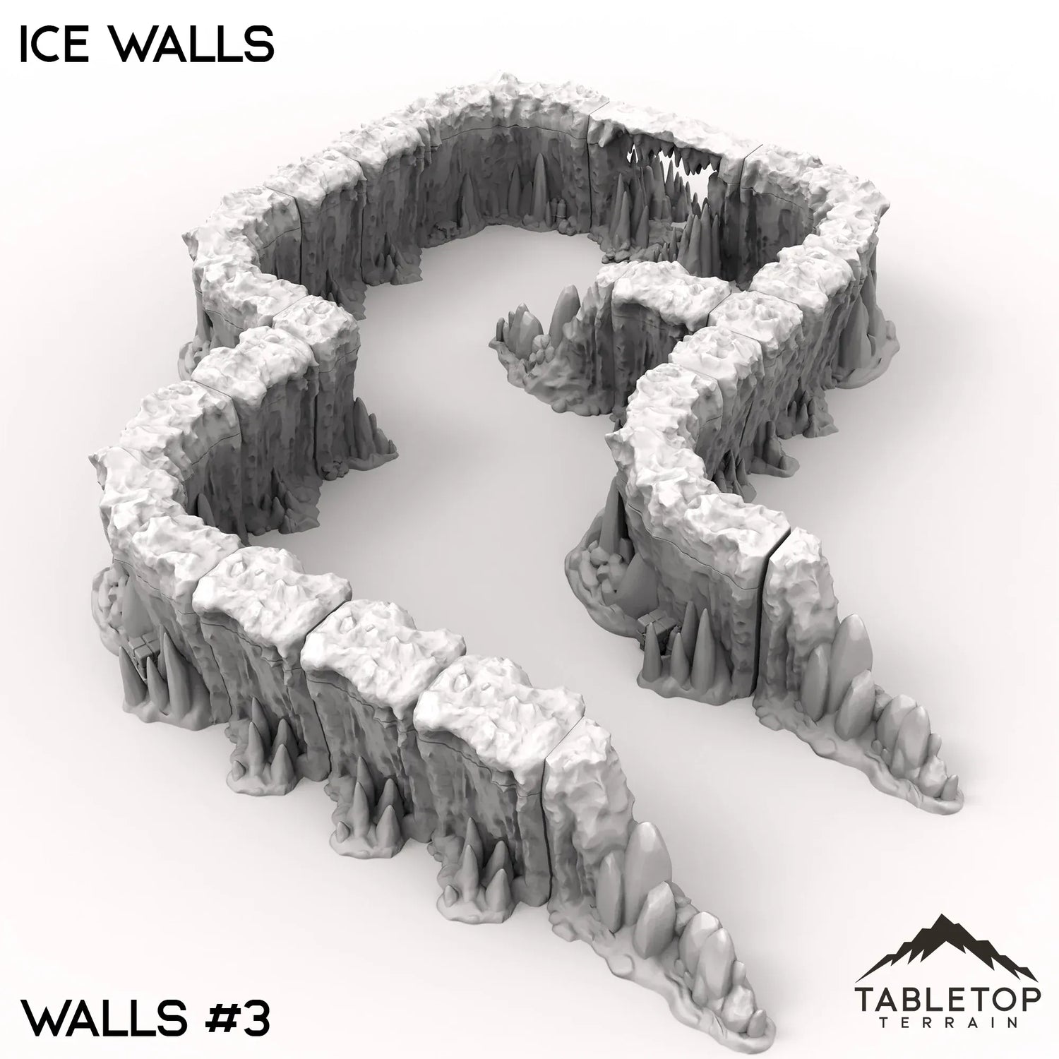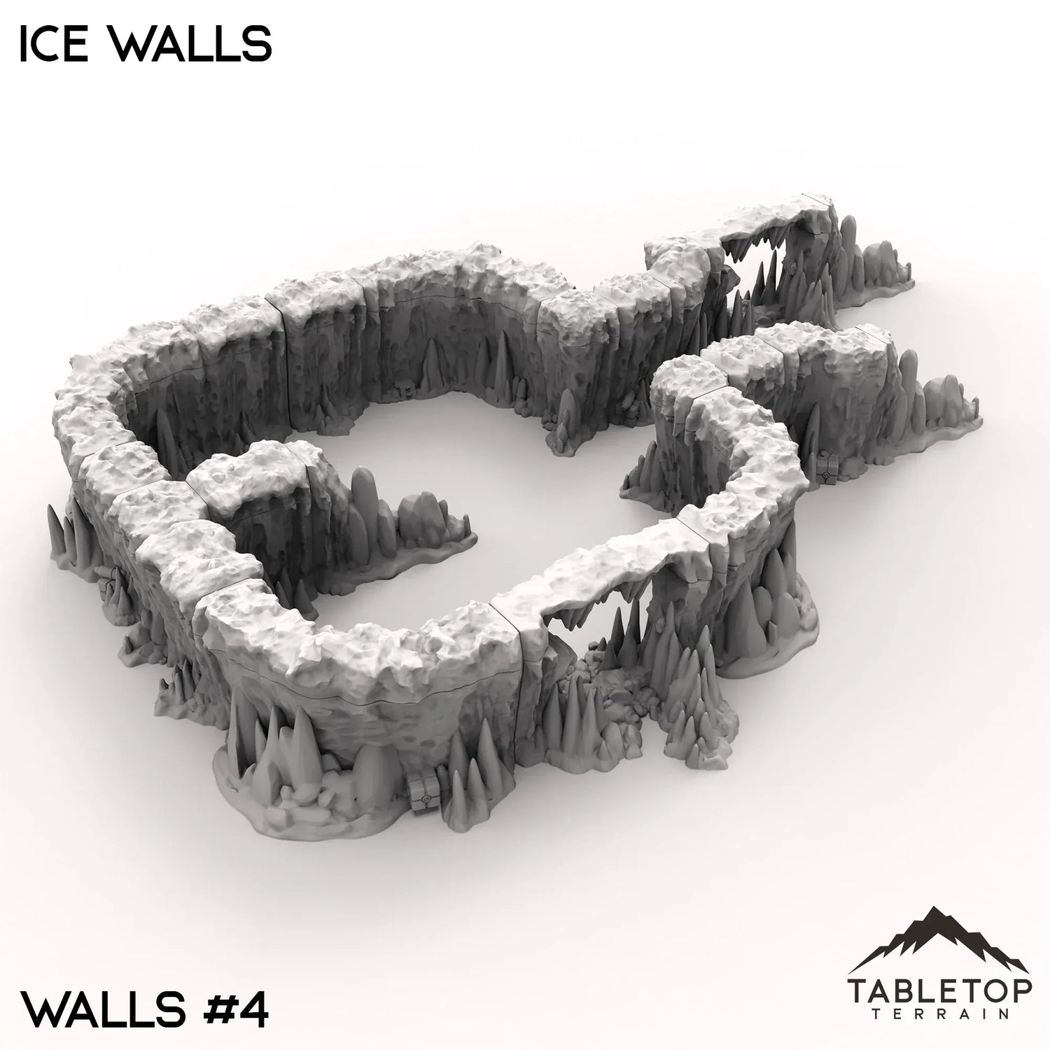 The ice walls rise high with jagged edges, glistening in the cold light. Their translucent surfaces reveal hints of trapped air bubbles and frozen layers within. They stand as natural barriers, imposing and unyielding against the icy environment.