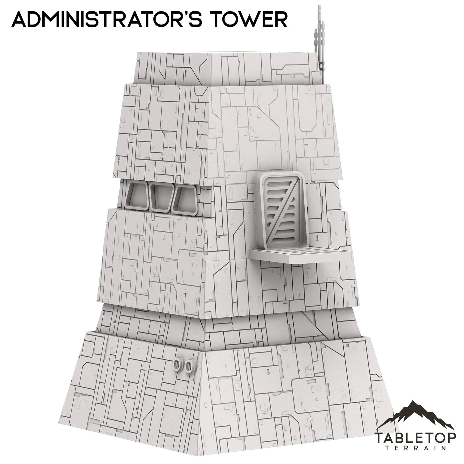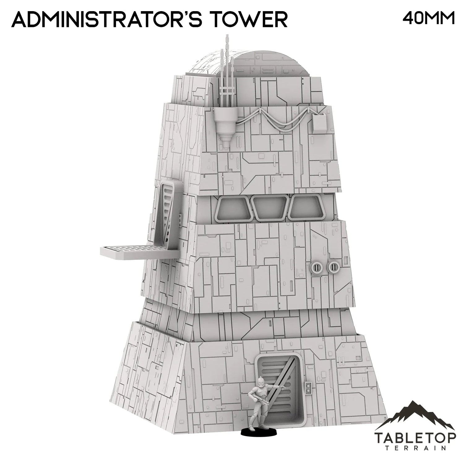 This is a part of the Imperial Military Prefab collection from Multiverse. It's designed for a Shattered Galaxy (40mm scale) and fully compatible with the game's sizes and level height requirements. Each of the pieces all have multiple spots to connect bridges and walkways for modular play.