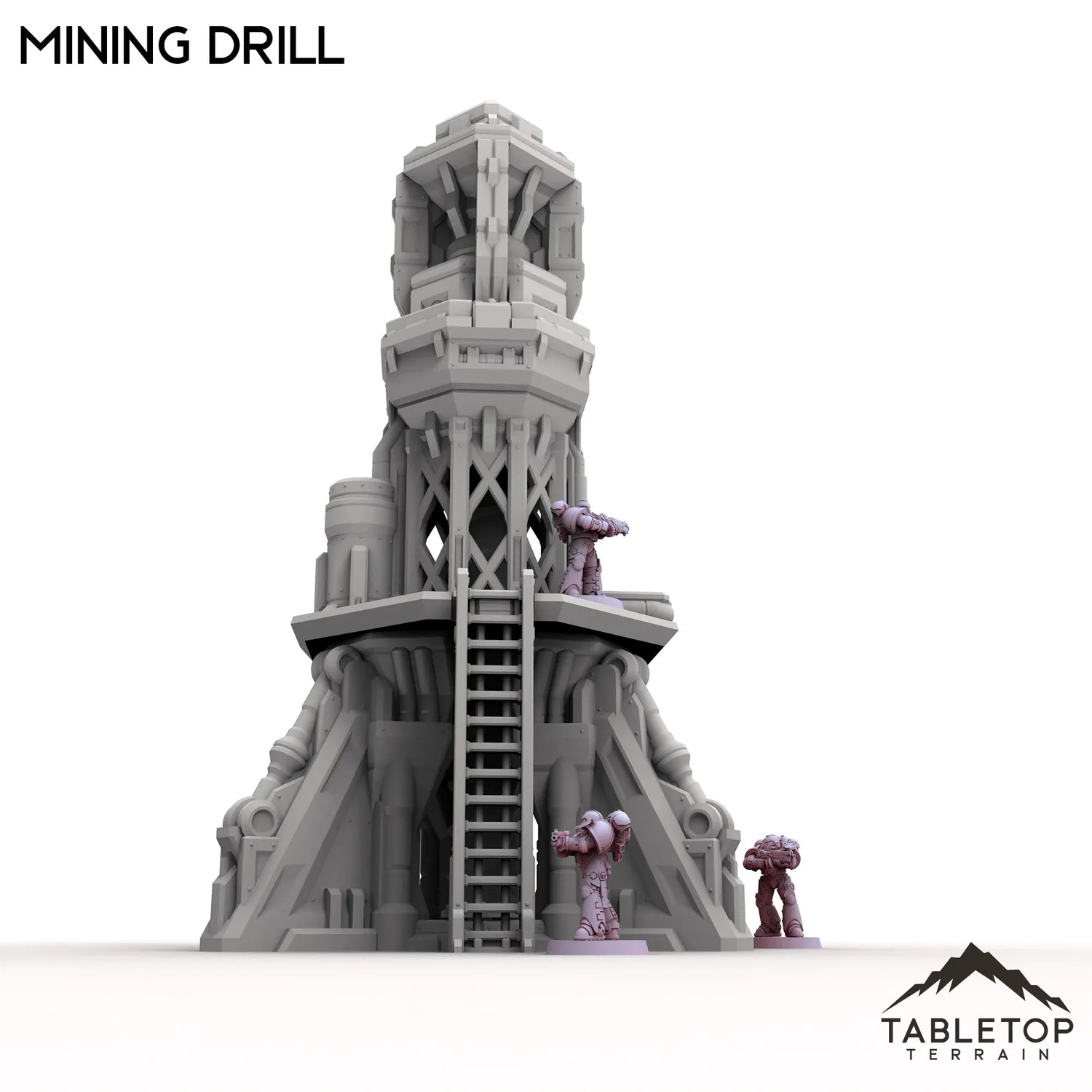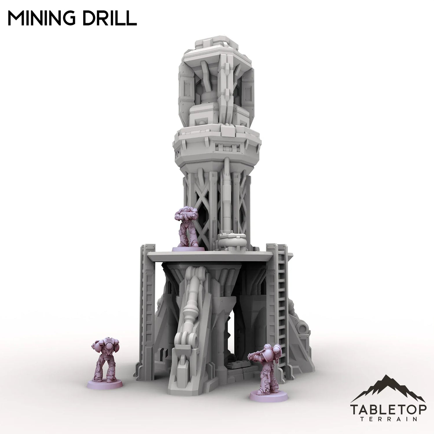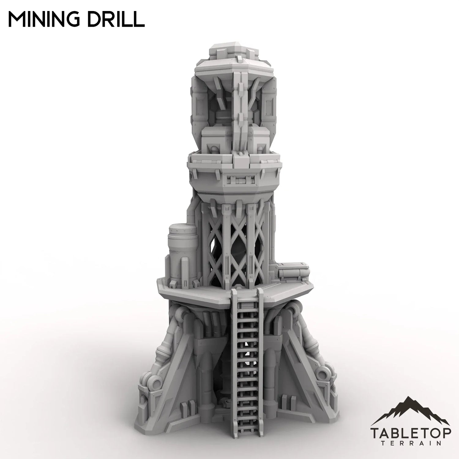 The Mining Drill is a heavy-duty industrial rig designed to tear into bedrock and extract valuable resources from deep below. Featuring a massive rotating bit, reinforced supports, and exposed pistons, it fits right into off-world colonies, frontier outposts, or industrial zones.