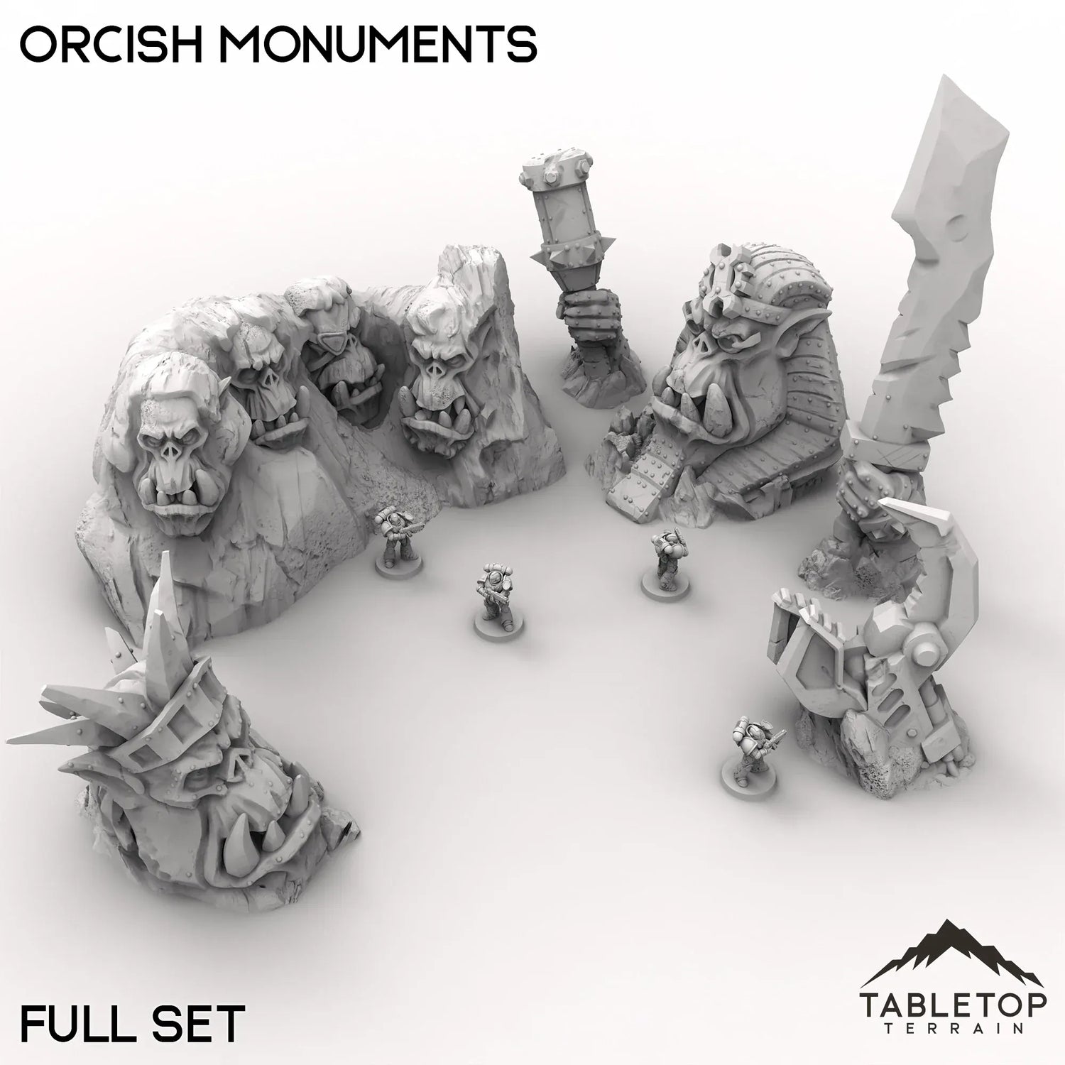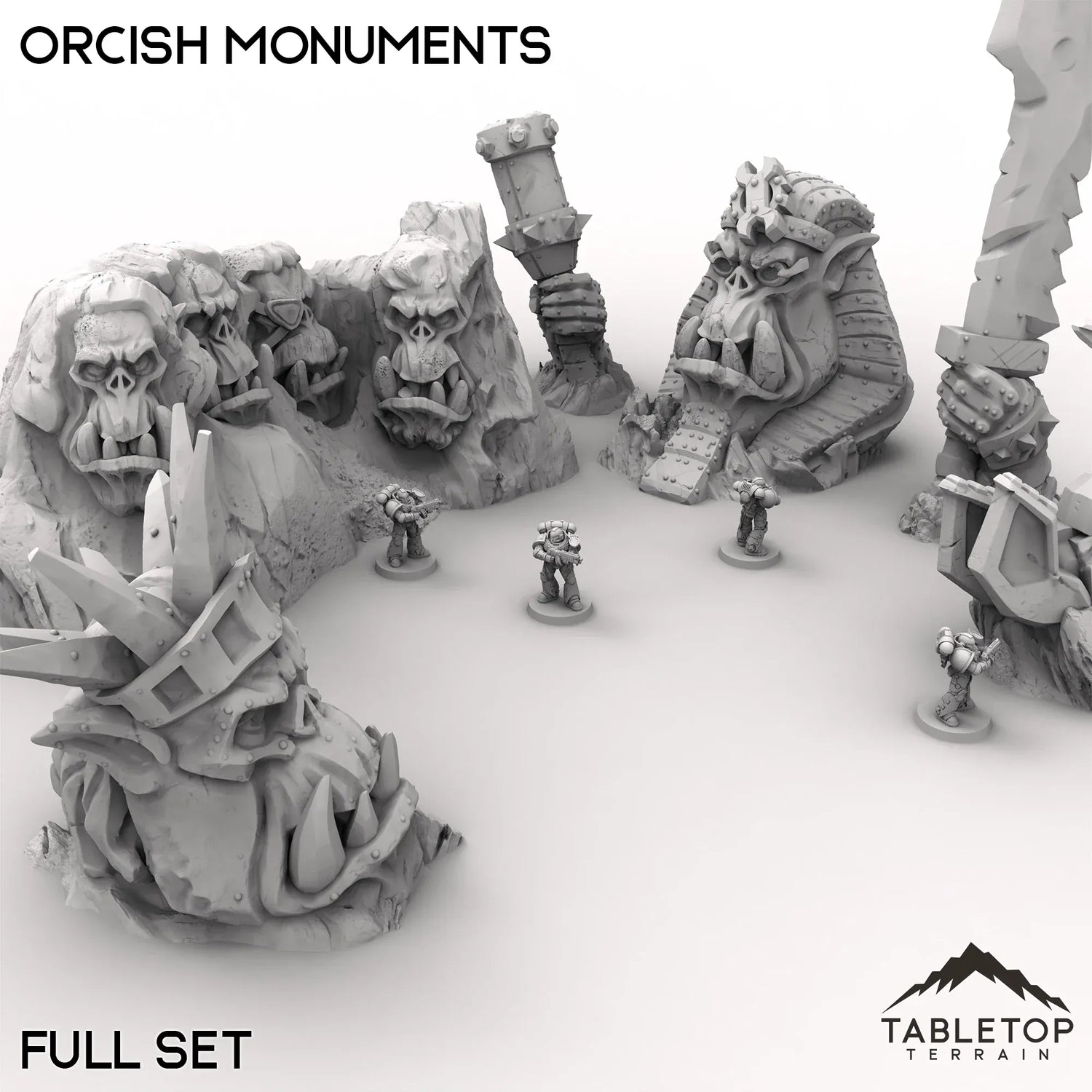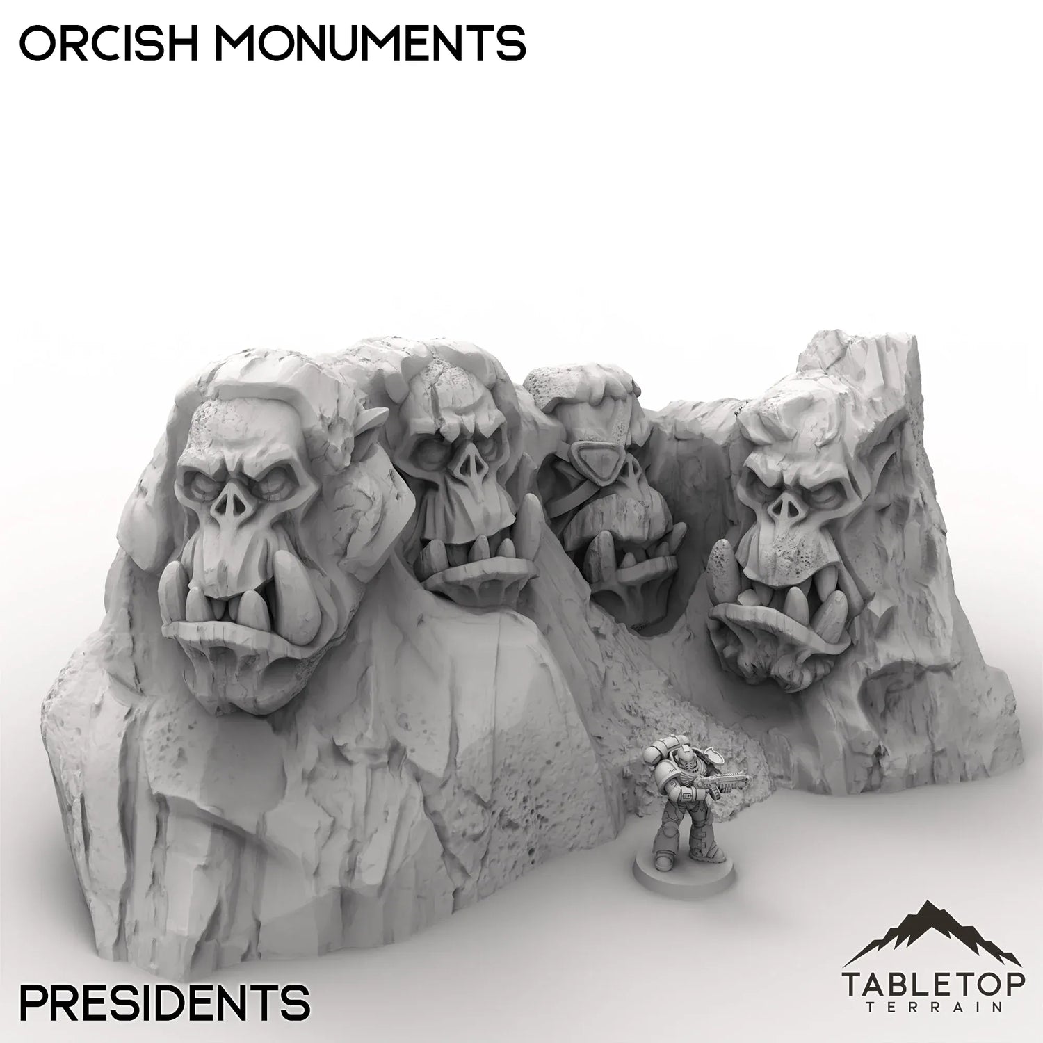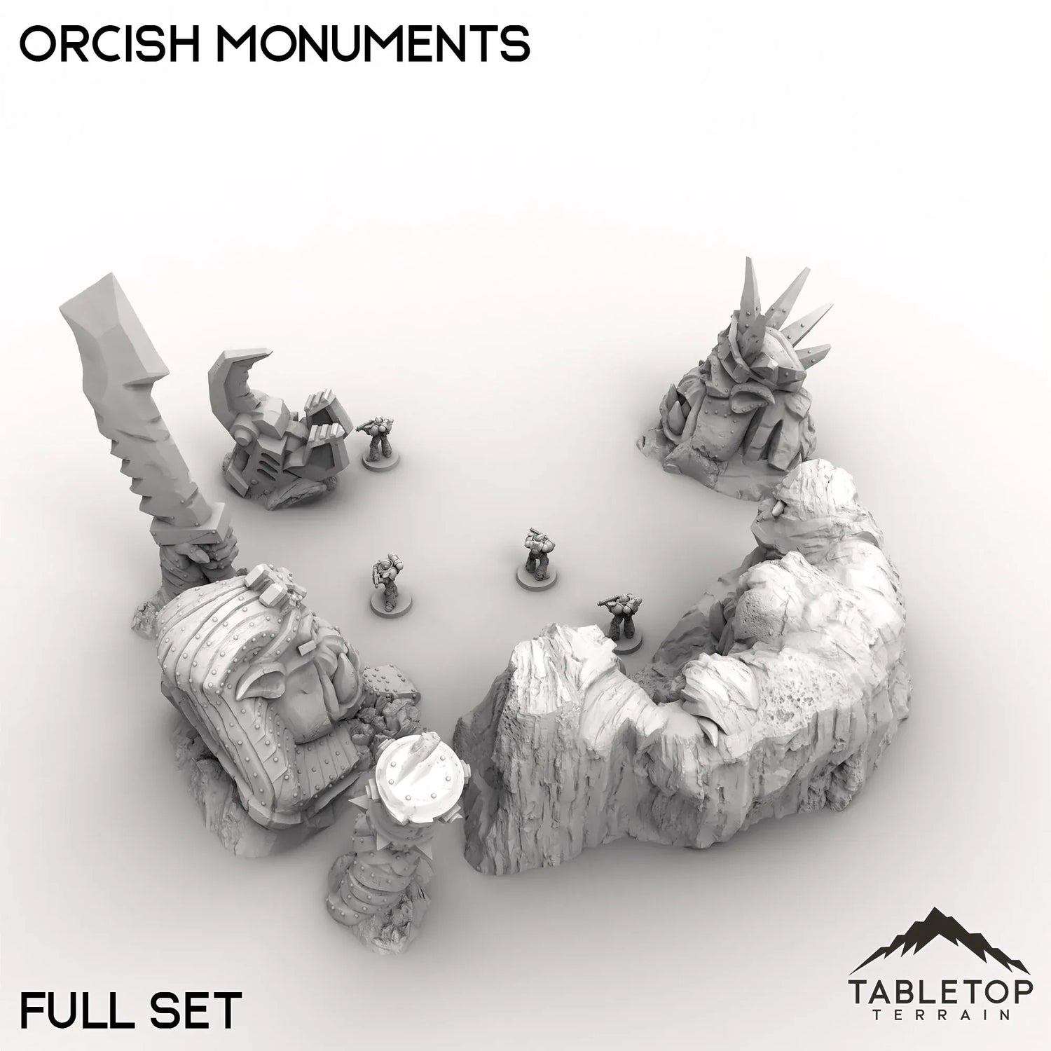 A brutal display of Orcish pride, these monuments tower over the battlefield with crude but imposing craftsmanship. A massive claw, grenade and slicer stand as testaments to battlefield glory while Orcy Liberty and presidential carvings hint at a connection to another world. Buy each piece individually or the whole set at a discount