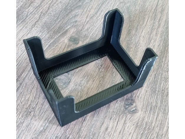 This is an organizer for the board game Ready Set Bet. It supports sleeved cards (I use 60 microns but 100 should also work) and vertical storage.