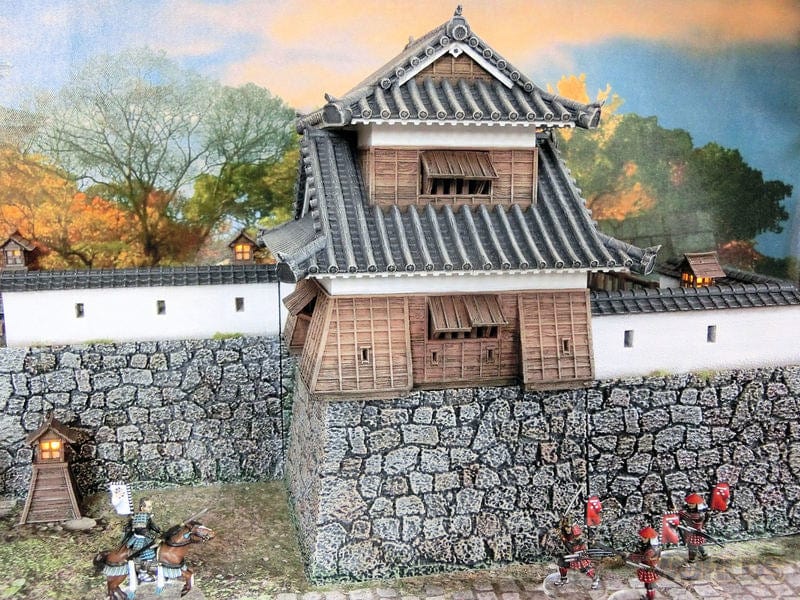 1 Samurai Castle Corner Tower requiring assembly in 28mm scale 175mm tall, or 240mm tall with the base wall section.