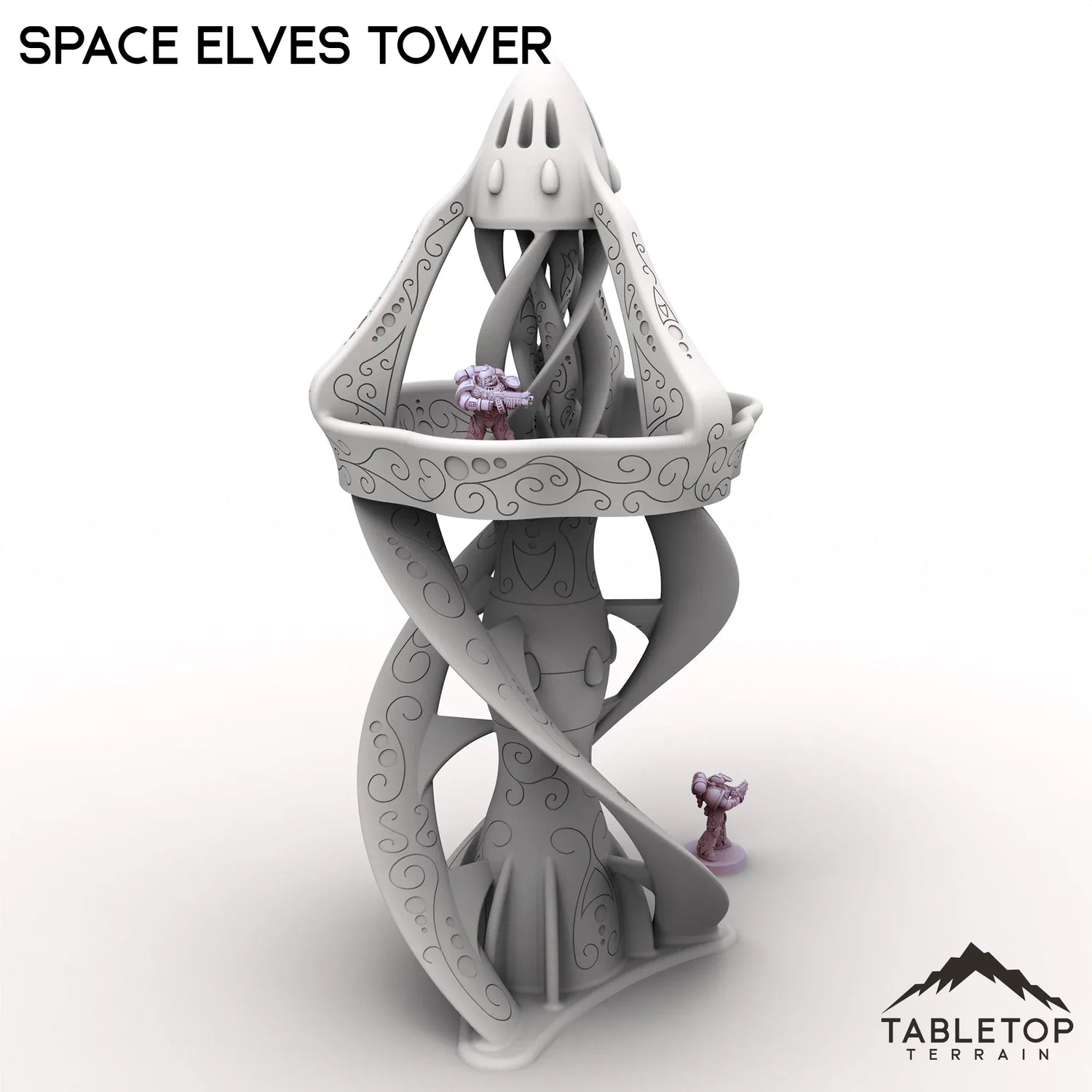 The Space Elves Tower is a set of xenos terrain that comes in two pieces.