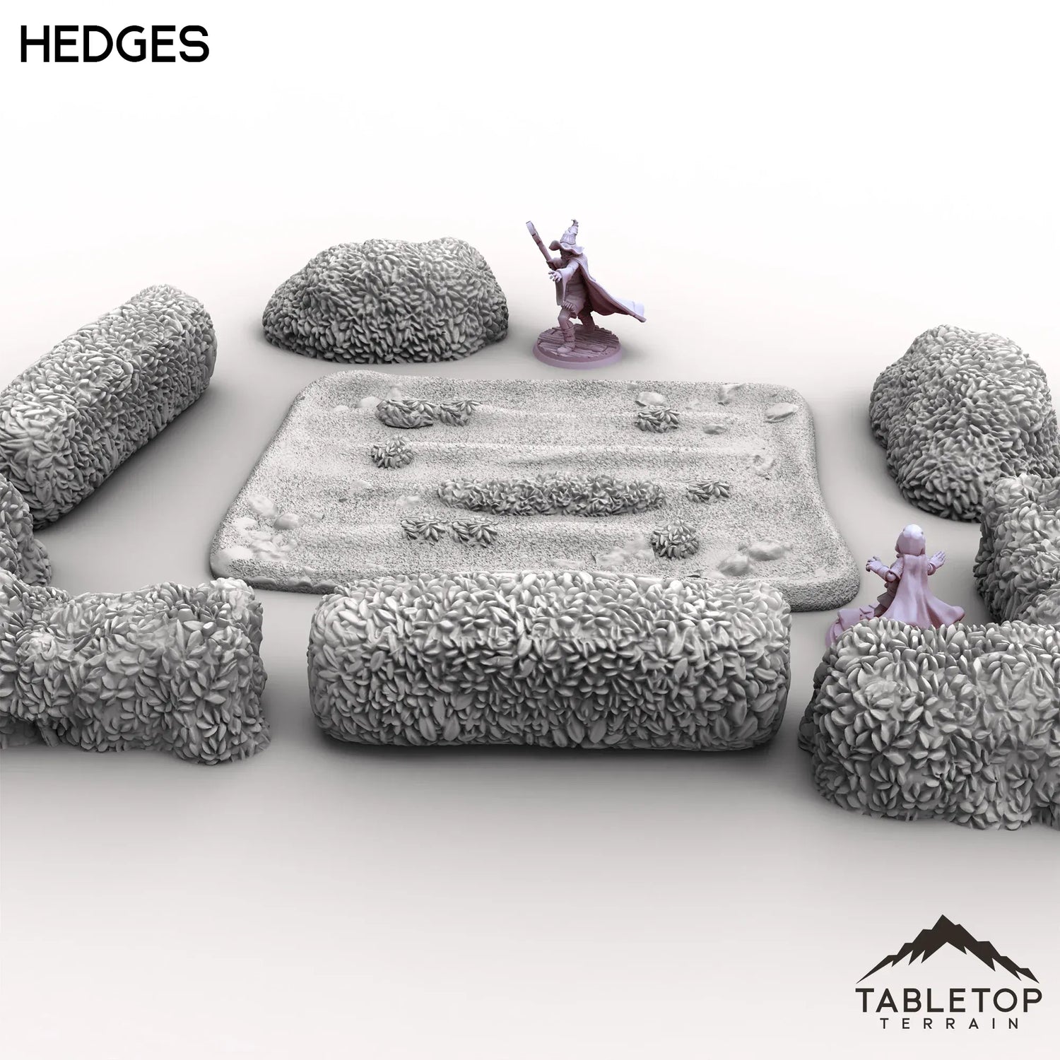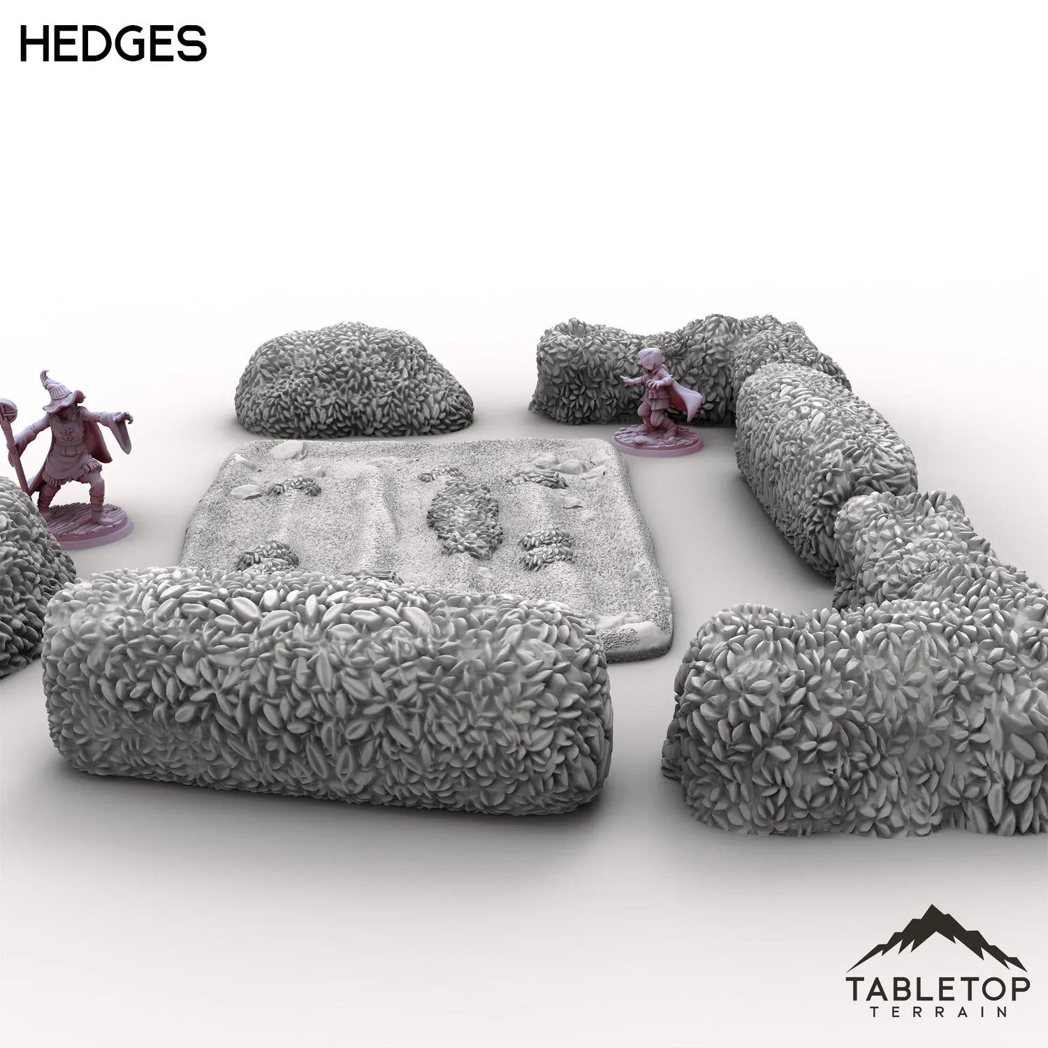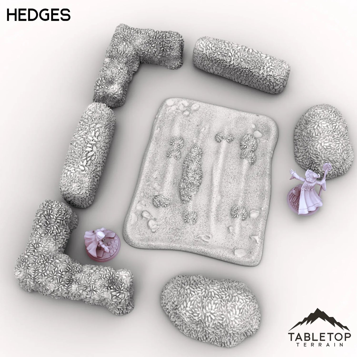 Part of the Vexed Village set, these Hedges include a variety of shapes around a unkempt field. The bushy foliage includes straight sections, L shaped sections and bushes. Perfect for cover or decoration either by themselves, or used with the rest of the Vexed Village pieces.
