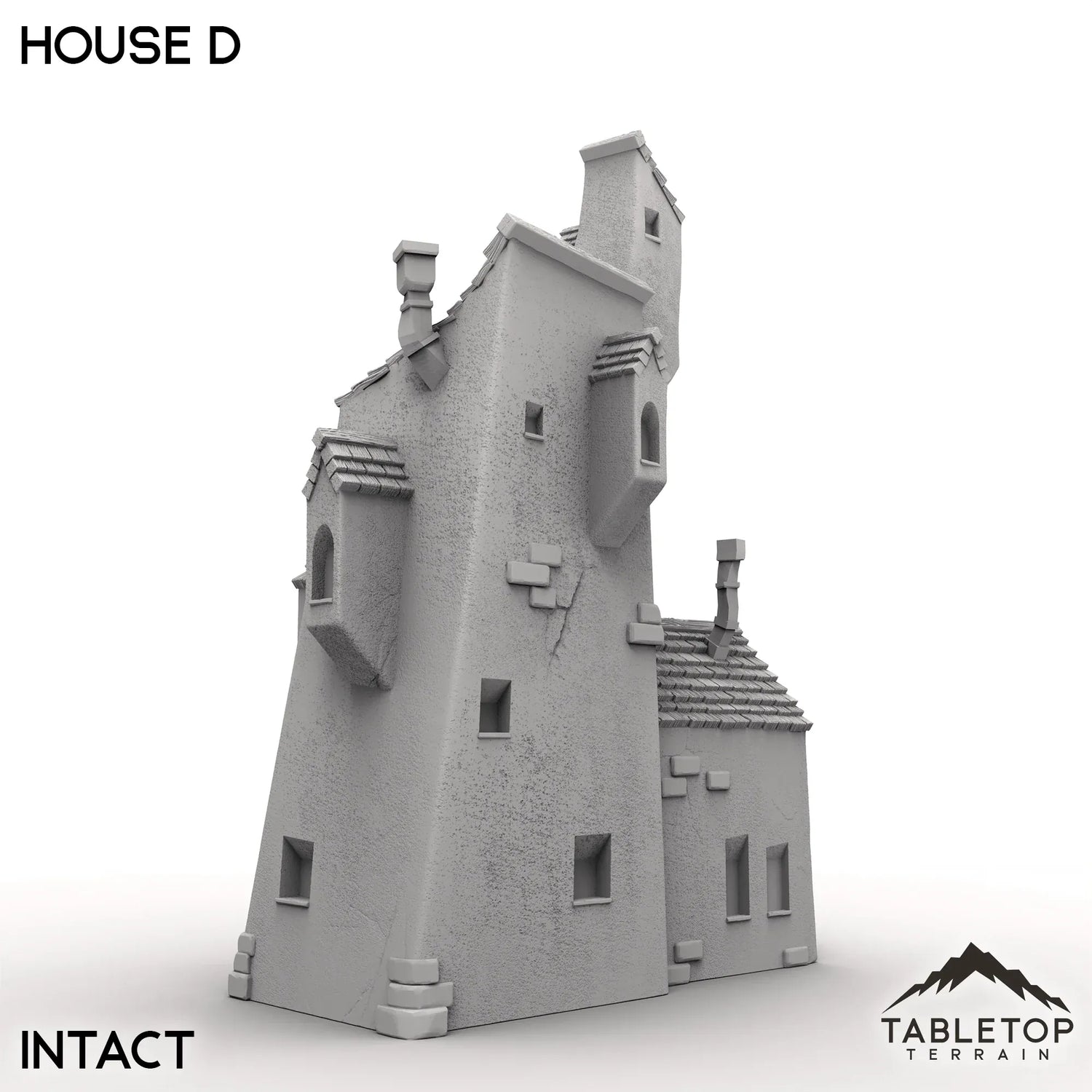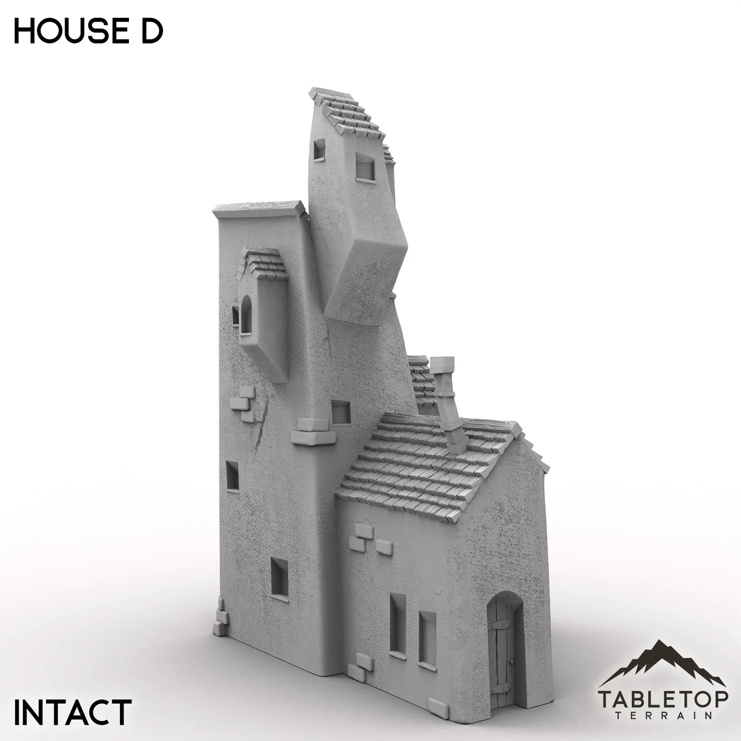 This church-like house, part of the Vexed Village set, has multiple crooked roof lines and walls that lean and twist as if bent by strange magic. It has small uneven windows and a twisted steeple that jut out from the sides. This house is available in either intact or ruined variant. Perfect as either part of the Vexed Village or standing alone as some bizarre witch’s house.