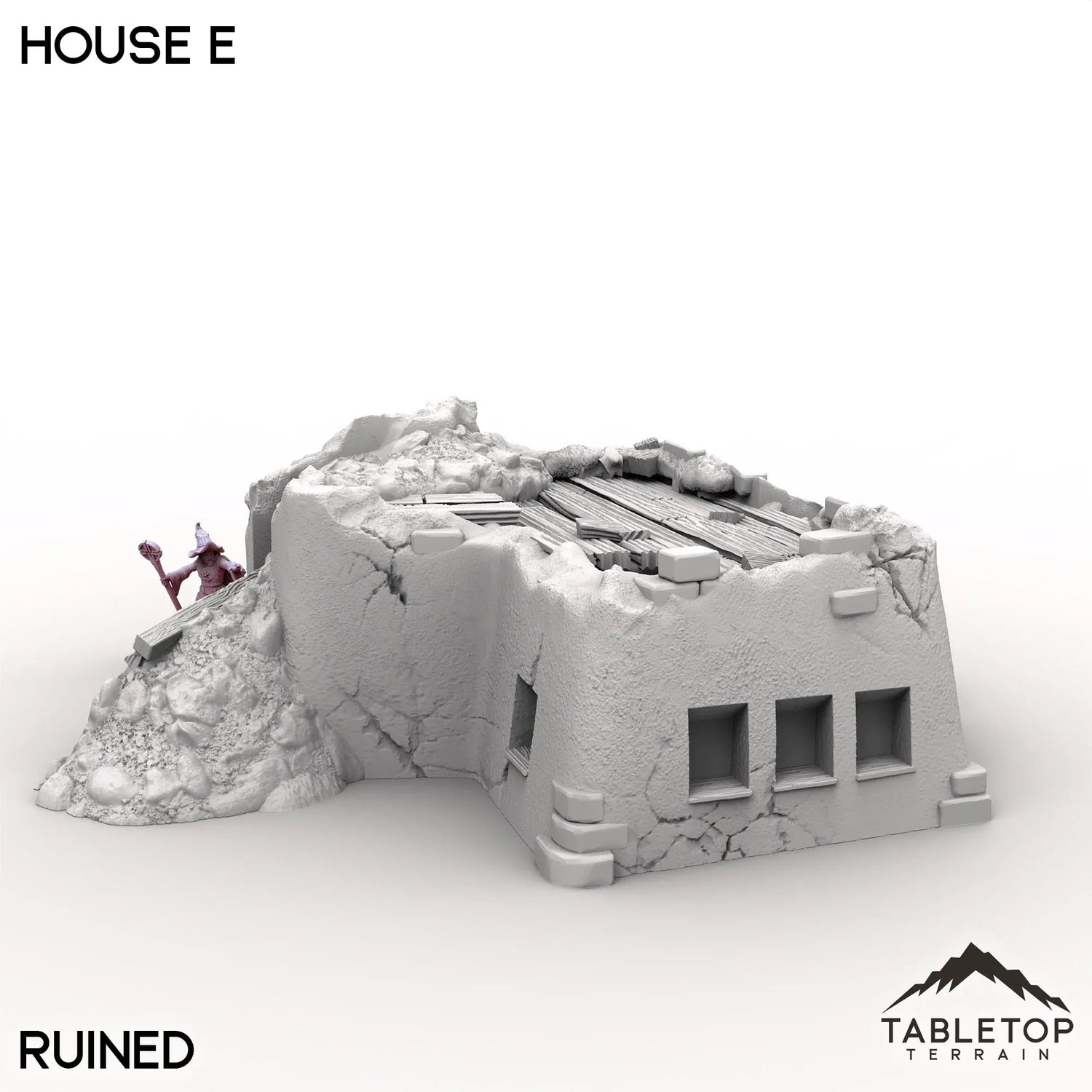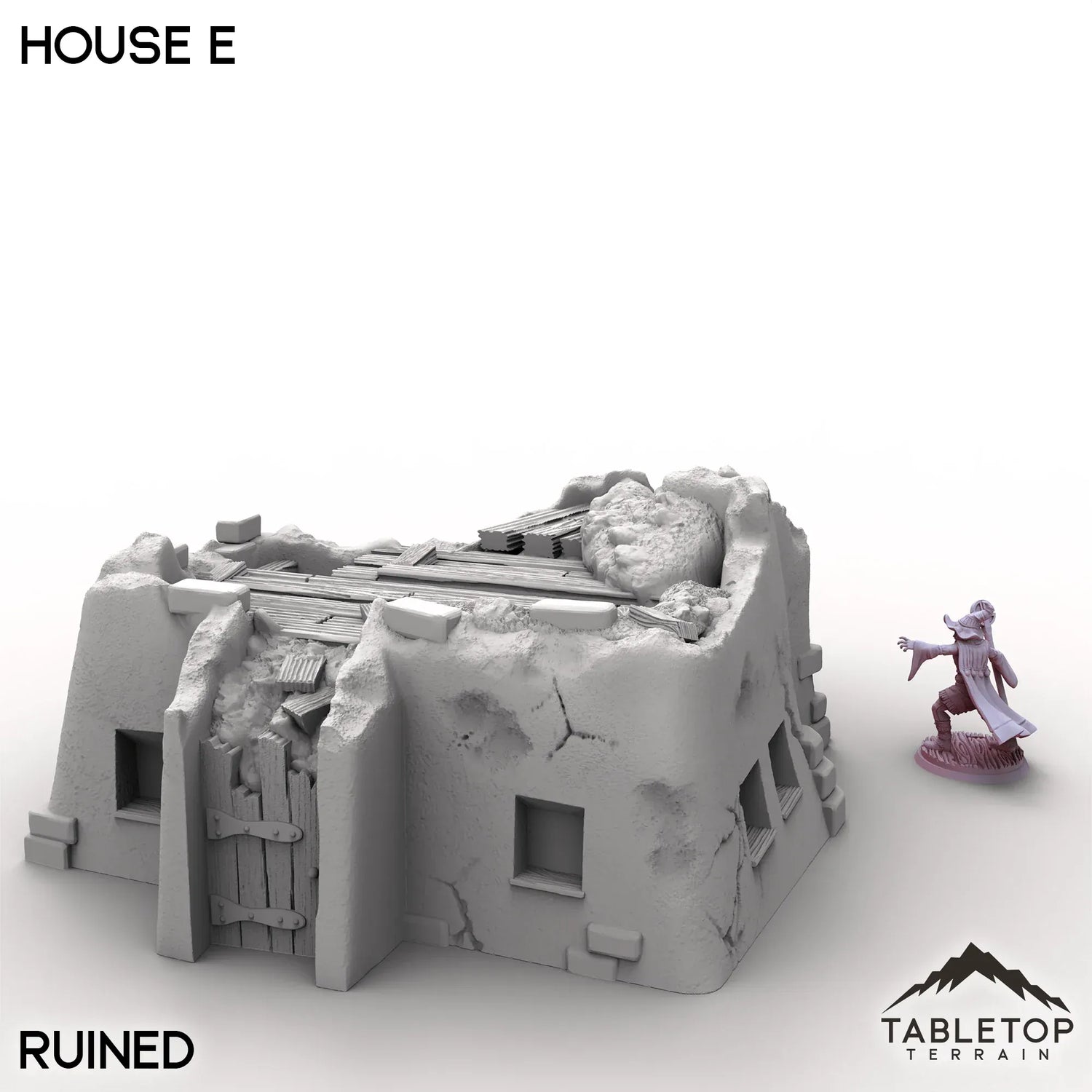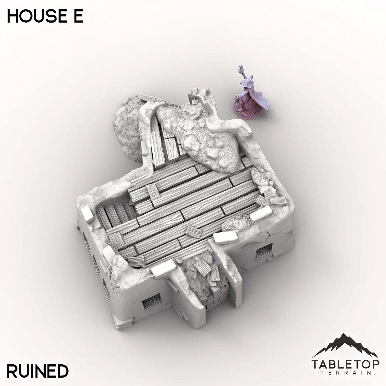 This squarish house, part of the Vexed Village set, has multiple crooked roof lines and walls that lean and twist as if bent by strange magic. It has small uneven windows and multiple twisted chimneys on its roof. This house is available in either intact or ruined variant. Perfect as either part of the Vexed Village or standing alone as some bizarre witch’s house.